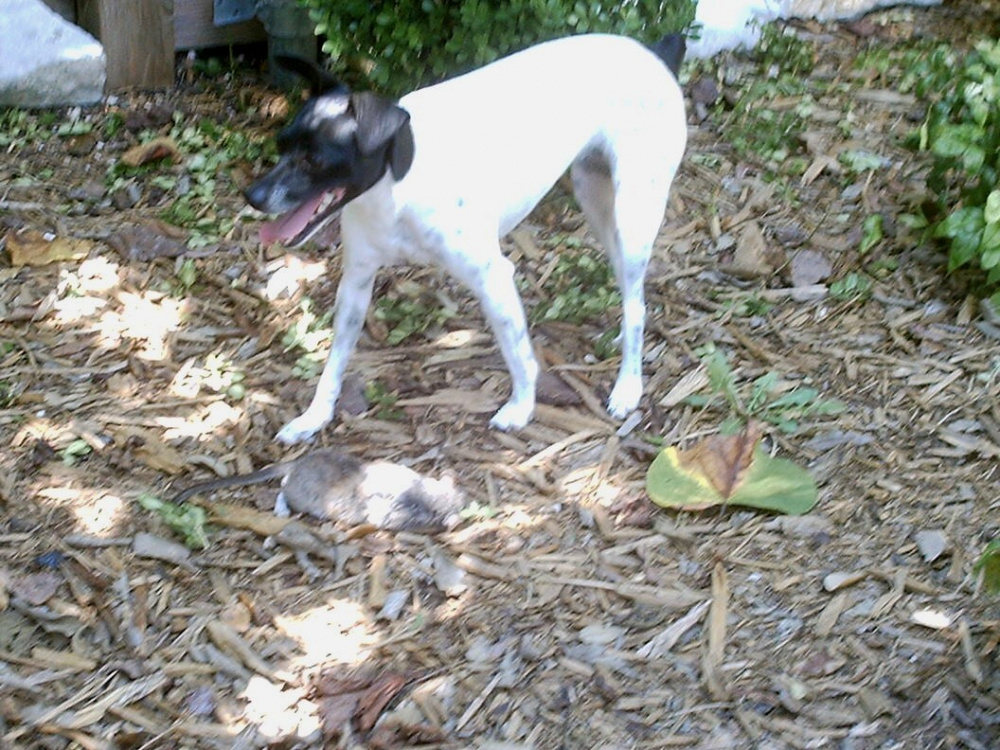 Logan4, rat terriers are very closely related to Jack Russells. Button has caught just one rat under our garden shed at our last house. She was most proud of herself that day. A lady I chat with on a terrier forum once told me "the difference between a Jack and a Rat terrier is that ratties have an off switch". She owned one of each, or perhaps I should say the two of them owned her, as that is often the case with both of these wonderful breeds.