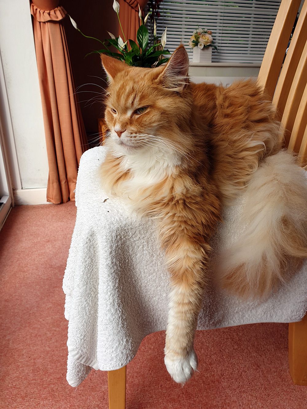 I have Poppy, just 17 years old we guess this month, a brown tabby and Robbie, a white and gold 12 years old Shi Tzu who I took on aged 6 years. No camera, no pics.