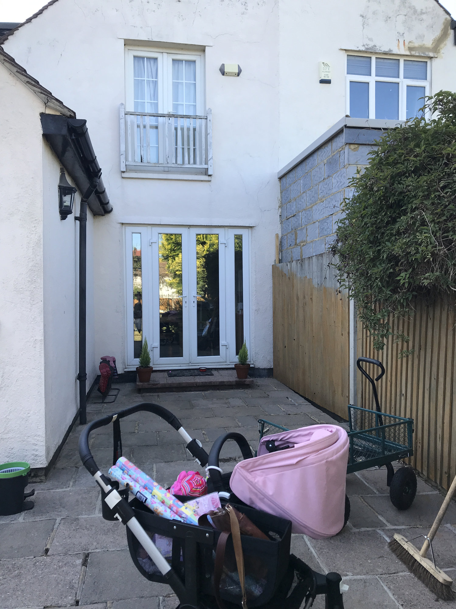 I have a south east facing section of the patio that is sheltered by our kitchen extension and the neighbours new extension.
