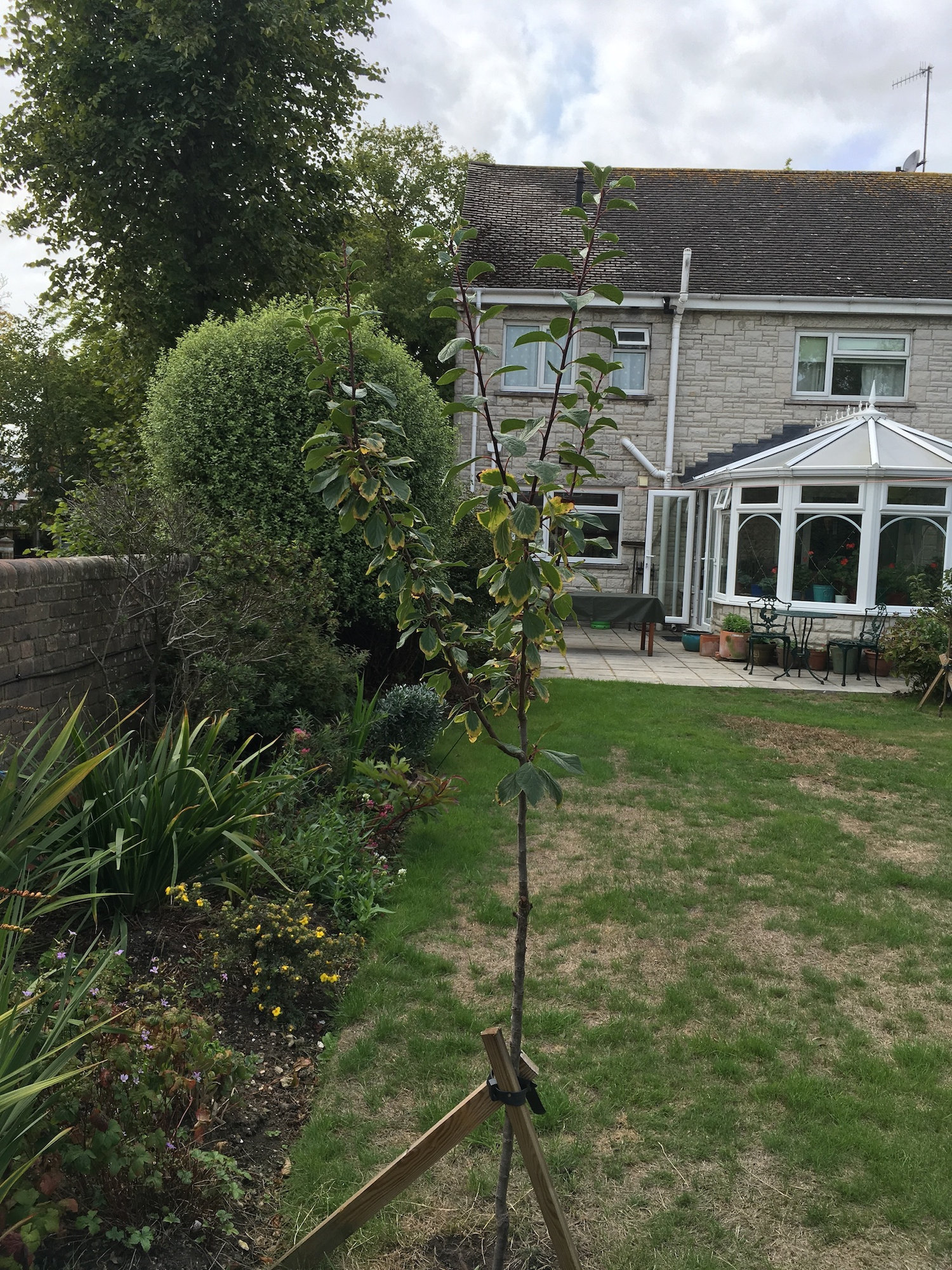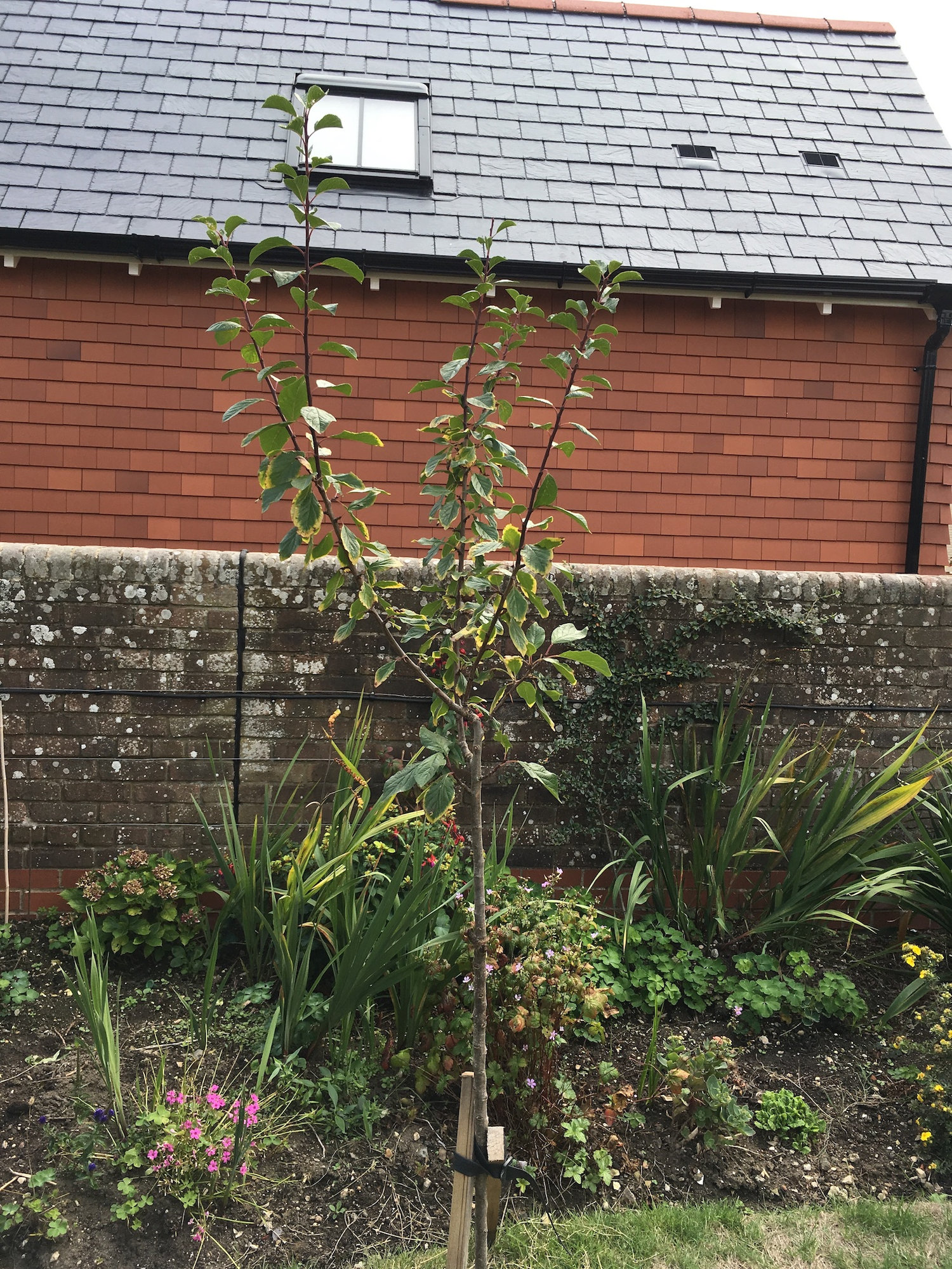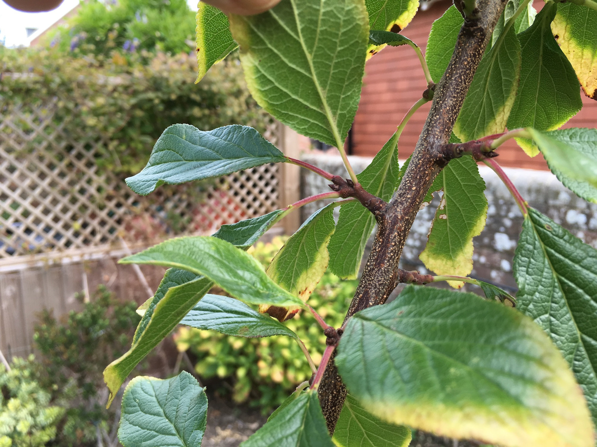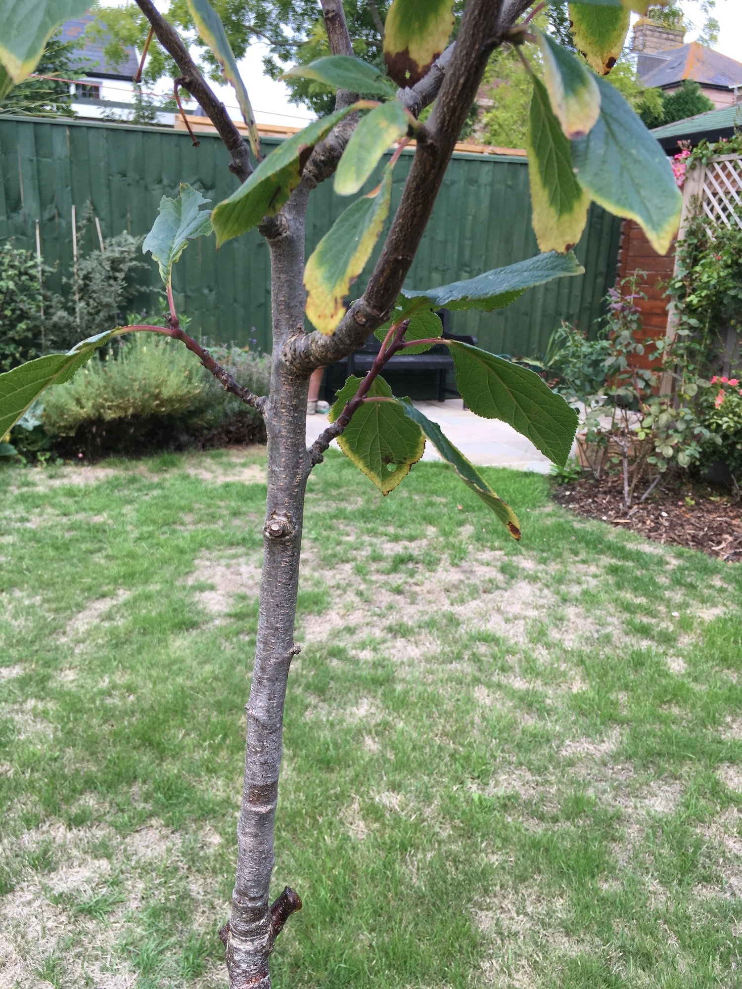 This is a three and half year old greengage. This year it gave just two fruit, but put on a lot of vertical growth.