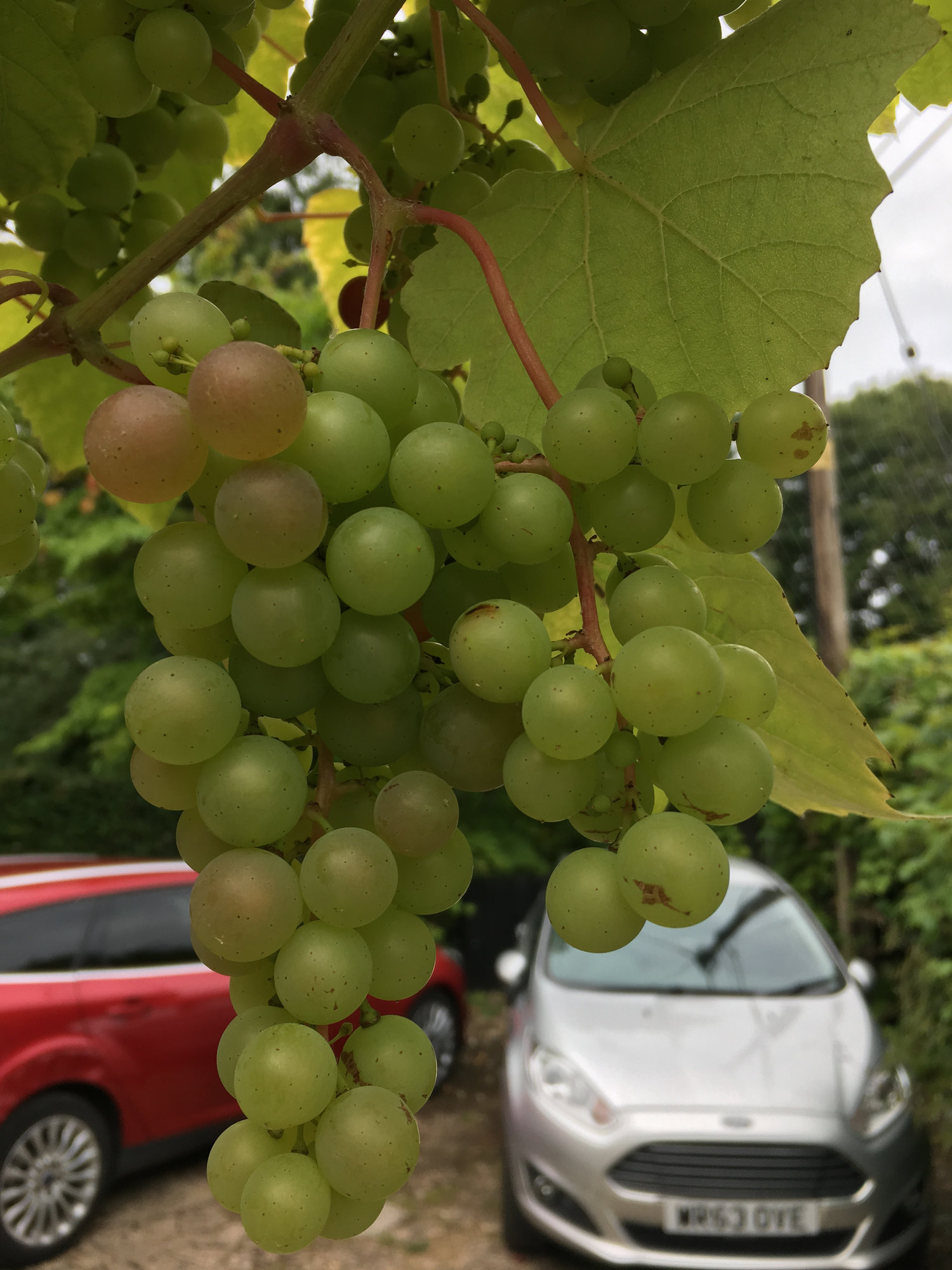 Once you know this it is easier to find a match online or in reference books. Outdoor grapes in the UK are likely to be from a limited range not including the main commercial wine varieties such as syrah, cabernet sauvingnon or merlot although it is still possible. I have a merlot growing in the garden as well as a Leon Millot.