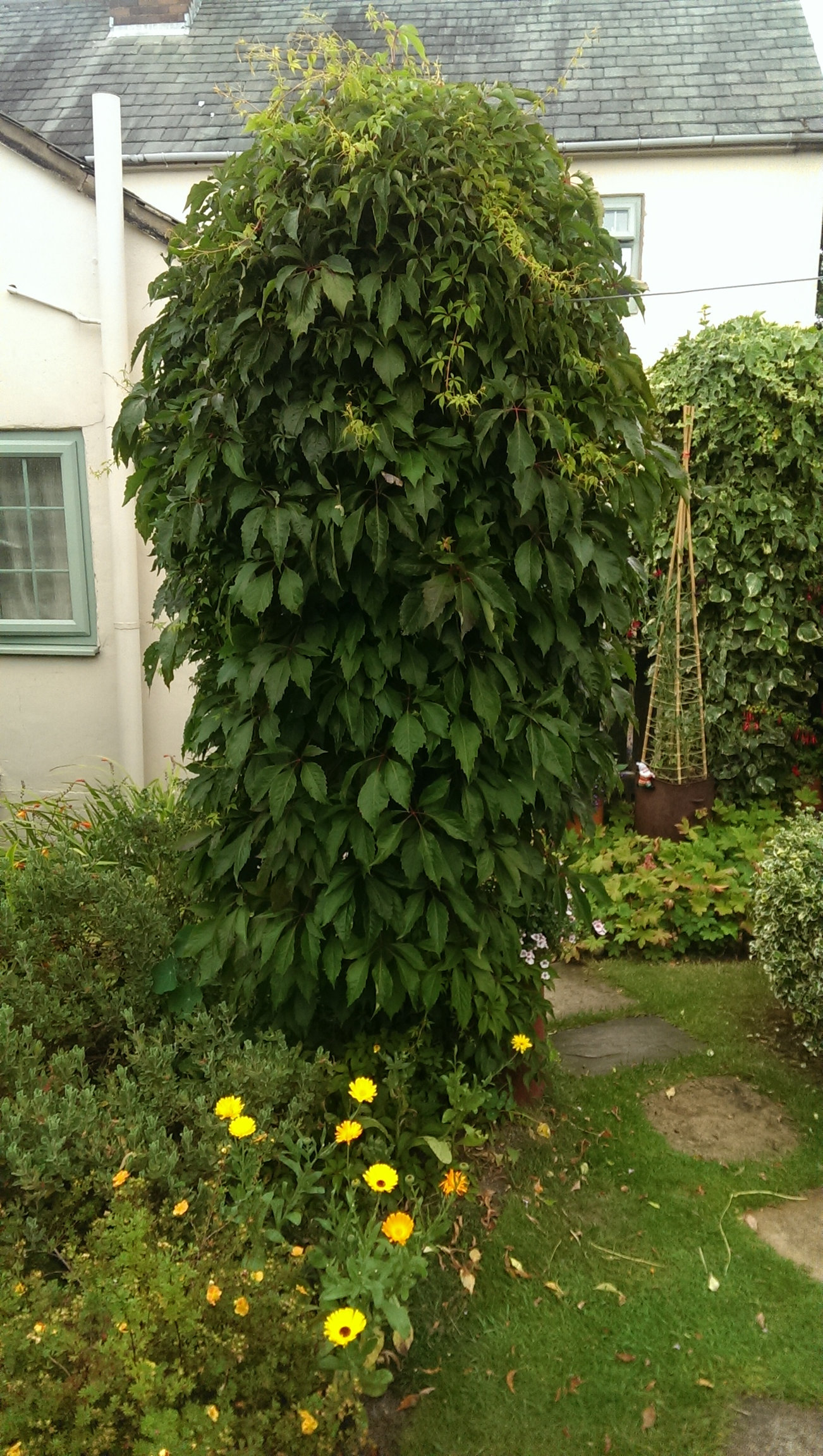 Hi, this is my concrete pole covered with virginia creeper. When the leaves have dropped it looks very interesting with the bare stems and when the leaves turn red its absolutely gorgeous.