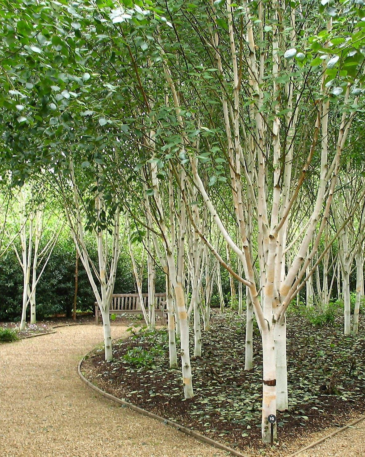 There is a Birch Tree (Betula) which has a wonderful white bark - equally as striking as the silver and more unusual. many garden centres stock it and it comes in different names one of which is Jaquemontii. Here is a pic:
