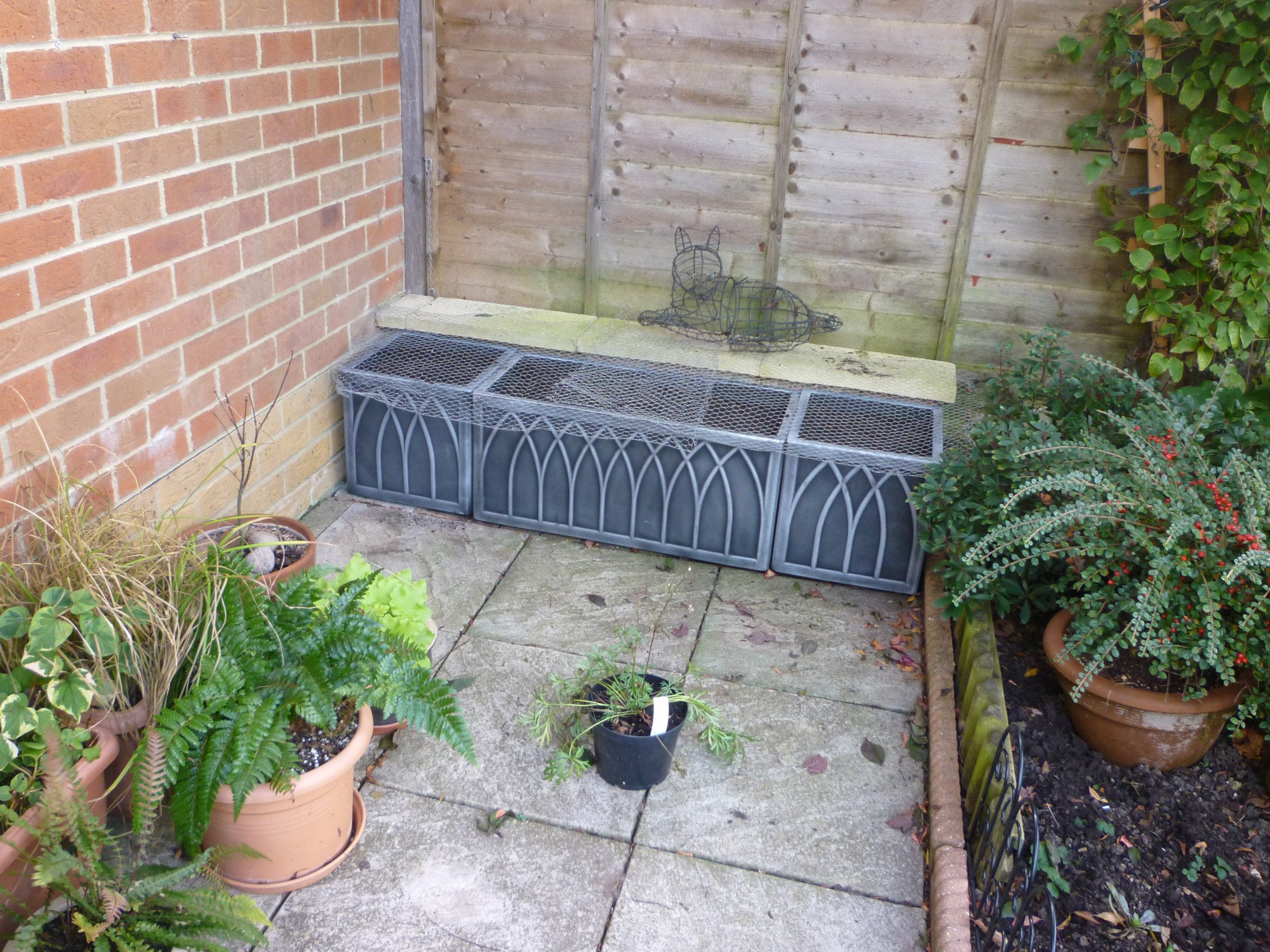 Filled the planters today with compost and shall leave over the winter to settle and then top up before planting.Have covered with netting so the cats don't think I have provided them with luxury toilet facilities!