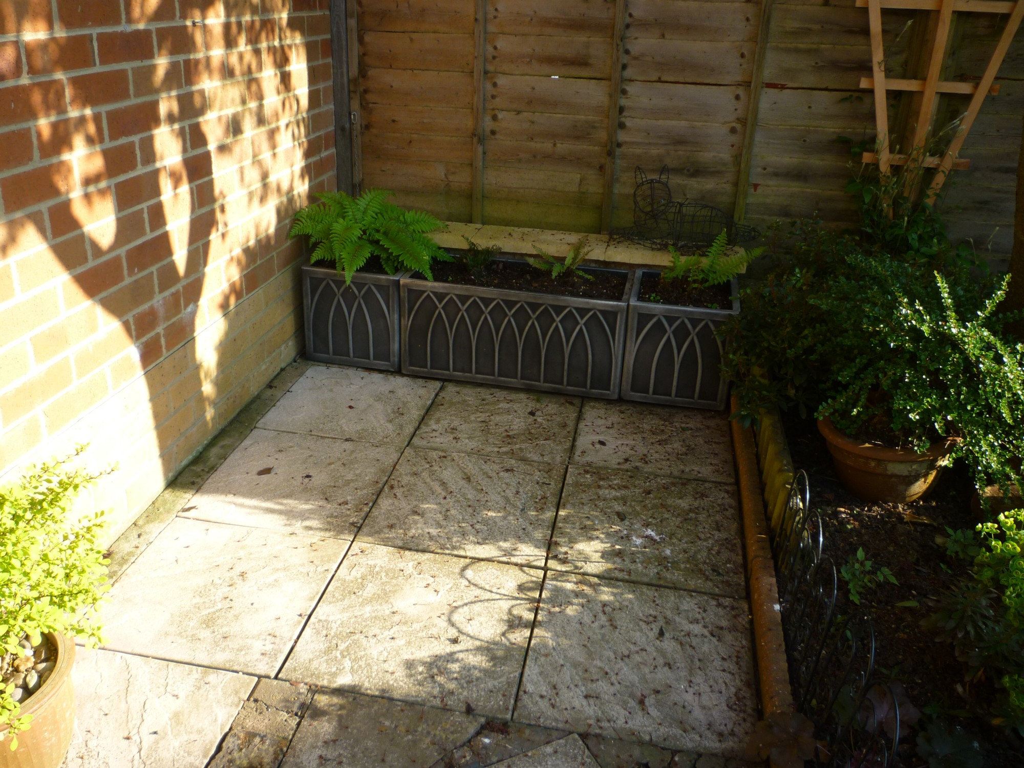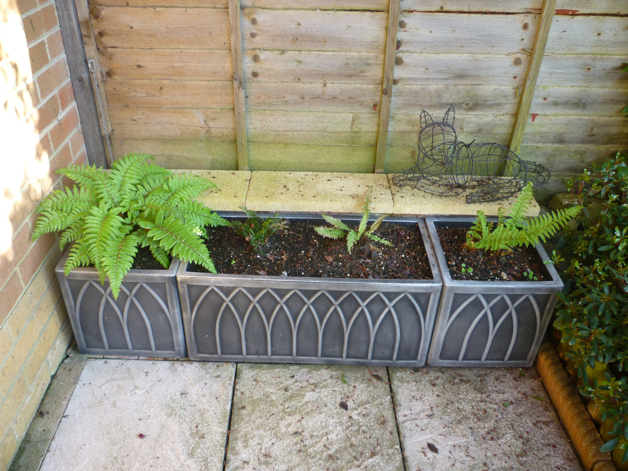 I have now planted ferns in the new planters,I already had them in pots so no more expense! I have had a rethink about using it as a seating area (round table and 2 chairs). In the past the area always had pots on the ground and a couple of hanging baskets on the wall so trying to sit at the table meant ducking the baskets and stepping over pots. So I will keep it a simple area (just have to find a home for those pots!) to look out at the rest of the garden.