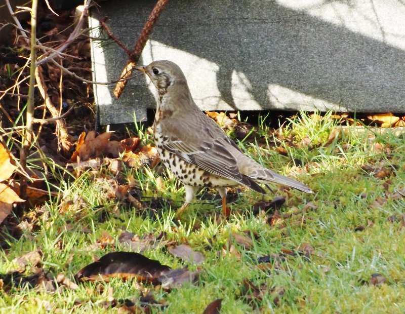 The lovely thrush visited again - eating the sloe berries I think, down the end of the front garden. Managed to get a couple of pix through the window. She's very beautiful. Looks like a 'she'.