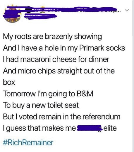 The "career psychopath", "foul-mouthed oaf" or "progressively deranged PM adviser" certainly appears to have an inveterate hatred of the "elite" and the "rich". Durham school and Oxford educated Cummings is one of the poor hoi polloi, of course....