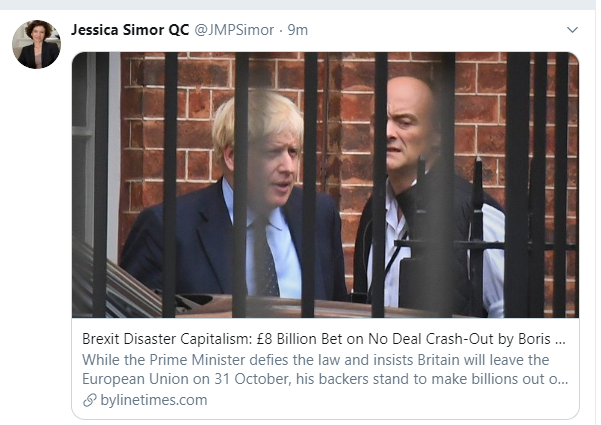 Downing Street chief and former Vote Leave boss lives in luxurious £1.6 million townhouse with a ‘tapestry room’ – and his wife’s family owns a castle.https://bylinetimes.com/2019/09/11/brexit-disaster-capitalism-8-billion-bet-on-no-deal-crash-out-by-boris-johnsons-leave-backers/