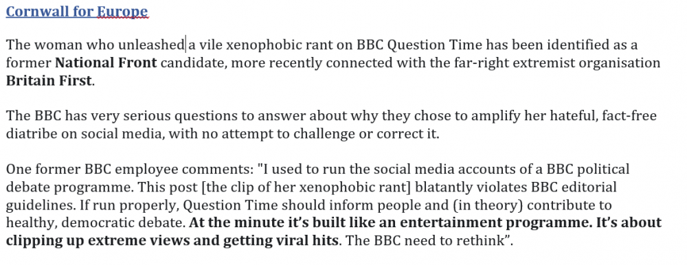 a vile xenophobic rant on BBC Question Time has been identified as a former National