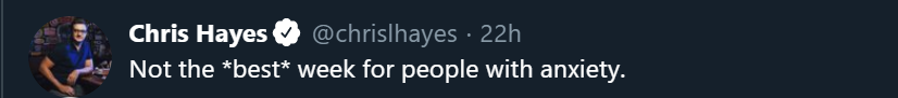 Some lucky creature has only had one week of stress and anxiety, though!