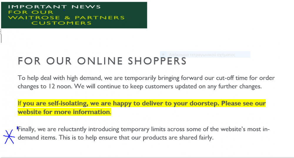 I think many of us have visited our usual supermarkets lately only to find many bare shelves. Waitrose, according to the email I've just received from them, are doing something about it. There will be loo paper for us latecomers too!