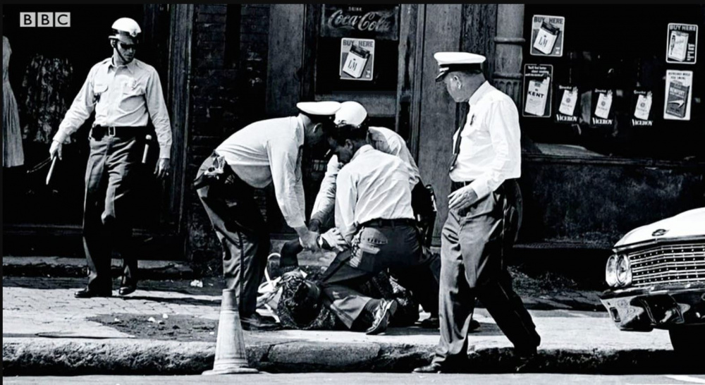 This is Birningham, Alabama in 1963, showing a white cop with his knee on the throat of a female protester; fully thirty years before Maxine Peake's claims that the Israeli secret service trained US cops in the technique. Yet, Momentum still insisit the "well criticism of Israel is not antisemitic".