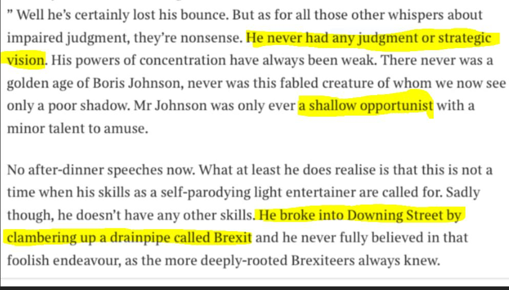 I hope the nation returns the sleight at the ballot box. We get what we vote for, and we voted for a craven cabinet of sycophants, prized only for blind RTing & nodding heads in unison over the leader’s latest ‘oven ready’ glib strapline.