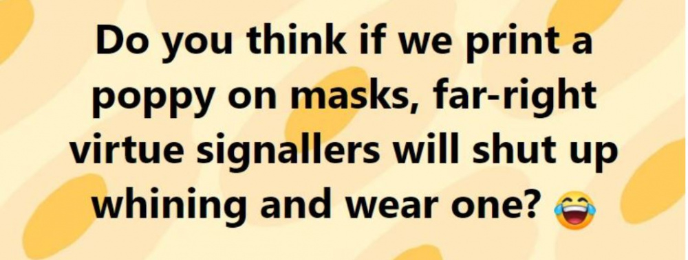 Do you think that if we print BLM on face masks, Marxist virtue signallers will shut up, stop demonstrating with minimal social distancing and wear one?