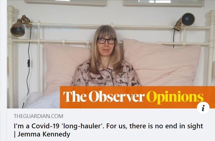 https://www.theguardian.com/commentisfree/2020/jul/26/im-a-covid-19-long-hauler-im-still-dealing-with-pain-fatigue-and-misery?CMP=fb_gu&utm_medium=Social&utm_source=Facebook&fbclid=IwAR3JD5P4emJ-8TnLsFwaFSFFvP7QLZouz2XyNaHAB2oPaQe9JbONTazxwqU#Echobox=1595749201