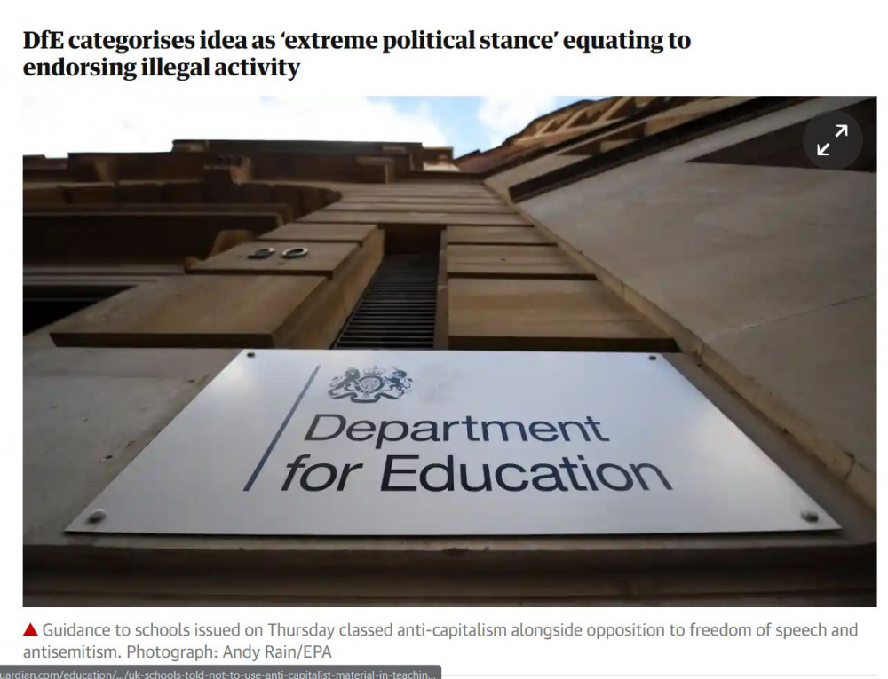 https://www.theguardian.com/education/2020/sep/27/uk-schools-told-not-to-use-anti-capitalist-material-in-teaching?fbclid=IwAR1OOhiC6s8n3dG2FSQ4EgIK6rgvrpDof_ZMqS7HW7ZNAuq_1Jx1ztlOUg8