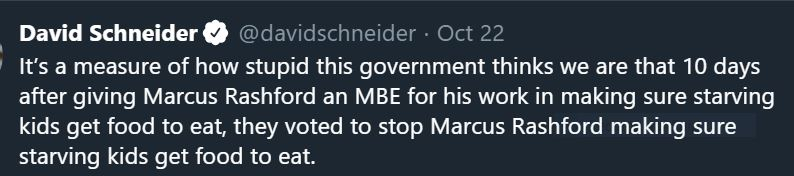 Just heard the current pm on the radio telling us all, in authoritative tones, he gives all families enough money to feed themselves throughout the year, including the holidays.