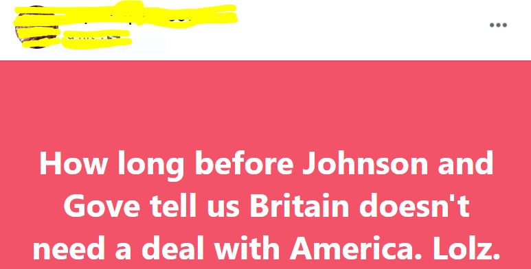 I believe the Mails - daily and otherwise- in their front pages have not even mentioned Biden's victory. Fearing, no doubt, chlorinated chicken might be off the menu.