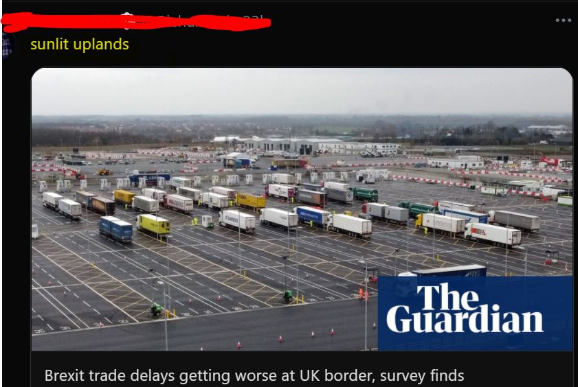 A mate of mine manufacturers equipment that lays the lines on roads - he exports in a small way. He sent some stuff to Ireland on the cusp of Brexit and one pallet crossed into the south but a few essential bits were delayed by a couple of days and now they've still not made to the customer - the paperwork has gone ping-pong three times so far and each time it's checked it costs £37