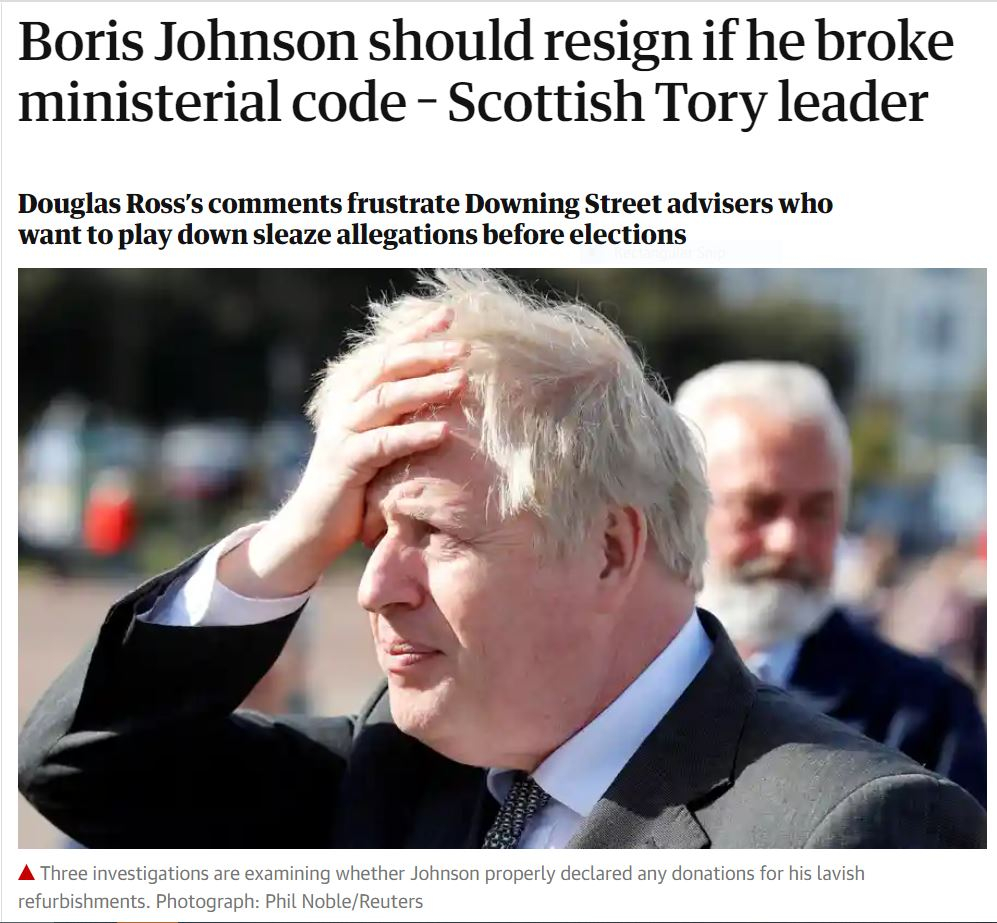 Or, and this might seem like a crazy idea, we could be told if he broke the code before the elections this week and the public can decide for themselves. I'm not sure why the deadlines for the findings are set to be released the day after the elections even if Boris is maintaining his right to suppress the findings anyway.