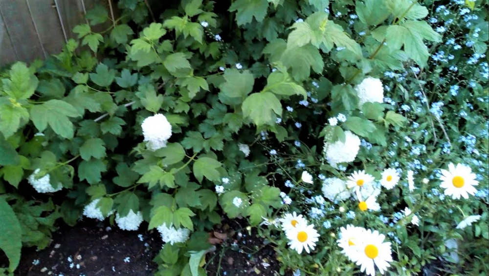I've put off removing the forget-me-nots for I forget how long; but, today is THE day and I must then pot on my beautiful long, very sweet peppers (I forget their ...brand but they're delicious- emphasis on FORGET!). That won't leave me any time to photograph my viburnum opulusES( ). I have 3 in the back and 1 in the front garden. So, 3 up on you, Zoe and Artemis. 🤣