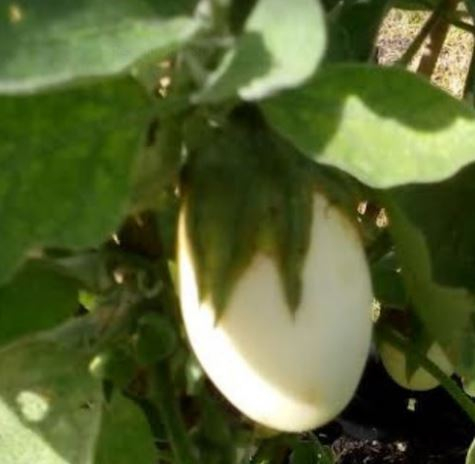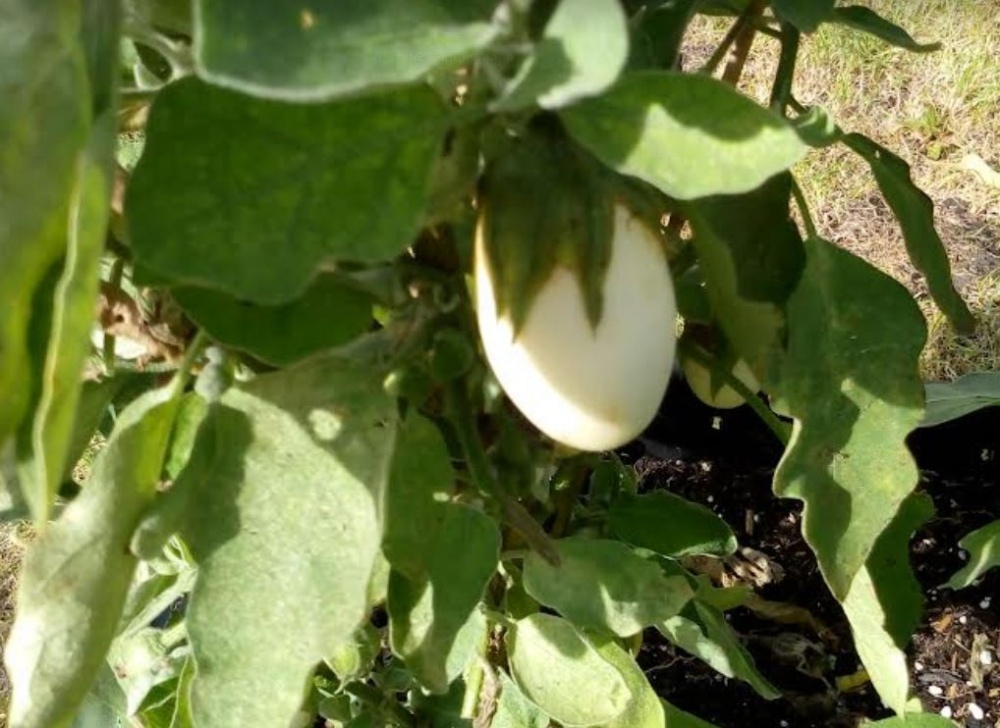 I had always been a bit puzzled by the fact that across the pond people call aubergines "egg plants". Earlier this year, a neighbour gave me some of his aubergine seedlings. Some have produced ordinary fruit, in colour and form, but others have produced eggs!