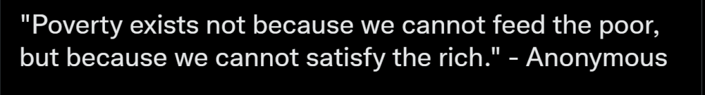 How true! I forget who it was who said something similar: Our planet provides enough for everybody's need but not enough for everbody's greed.