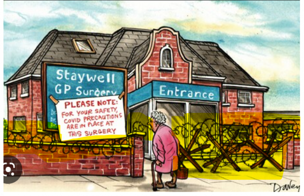 It seems to me that very many GPs, much like politicians, are overusing the nature of COVID to act as suits them. Yes, they've opened their shops, so they're "working"; but, you cannot choose to see them!