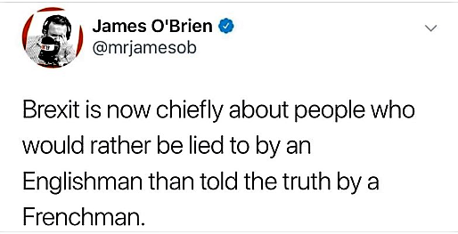 "The dream of Brexit isn’t that we might be able to make a brighter, new, energetic tomorrow, it’s a desire to shuffle back to a regret-curdled inward-looking yesterday. In the Brexit fantasy, the best we can hope for is to kick out all the work-all-hours foreigners and become caretakers to our own past in this self-congratulatory island of moaning and pomposity."