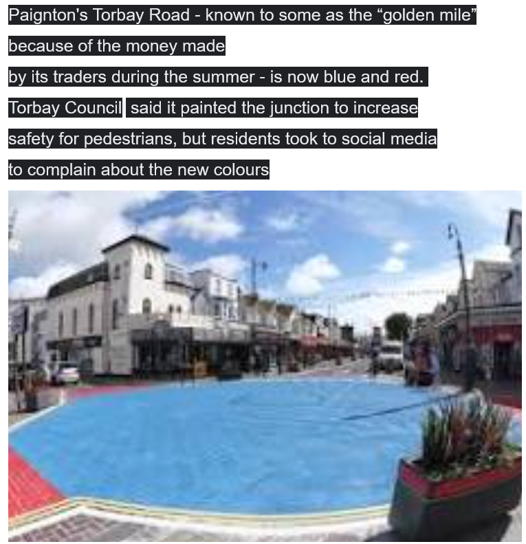 Earlier this morning, I heard on the radio that the Tory council of an English seaside town painted the town centre... blue and red! So, I googled it. Red? Not quite.