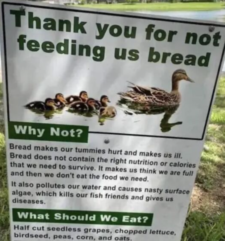 Despite this large sign by the pond at one of our local parks, several people continued to feed the ducks bread; and they ate it pretty voraciously, unfortunately.