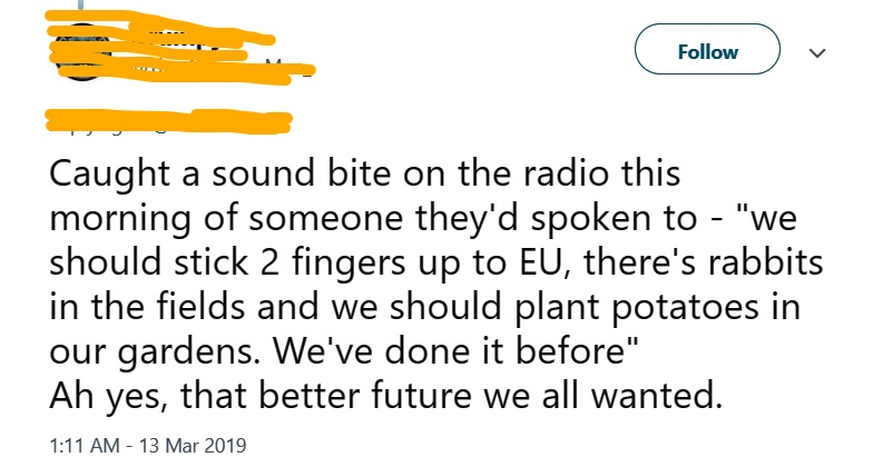 Prices are already on the upward march. I did my main shopping today and was most unpleasantly surprised when I saw the final bill. I suspect the filthy rich funders and promoters of leave, don't much care about increases in food prices or shortages. They probably have acres of allotments too!
