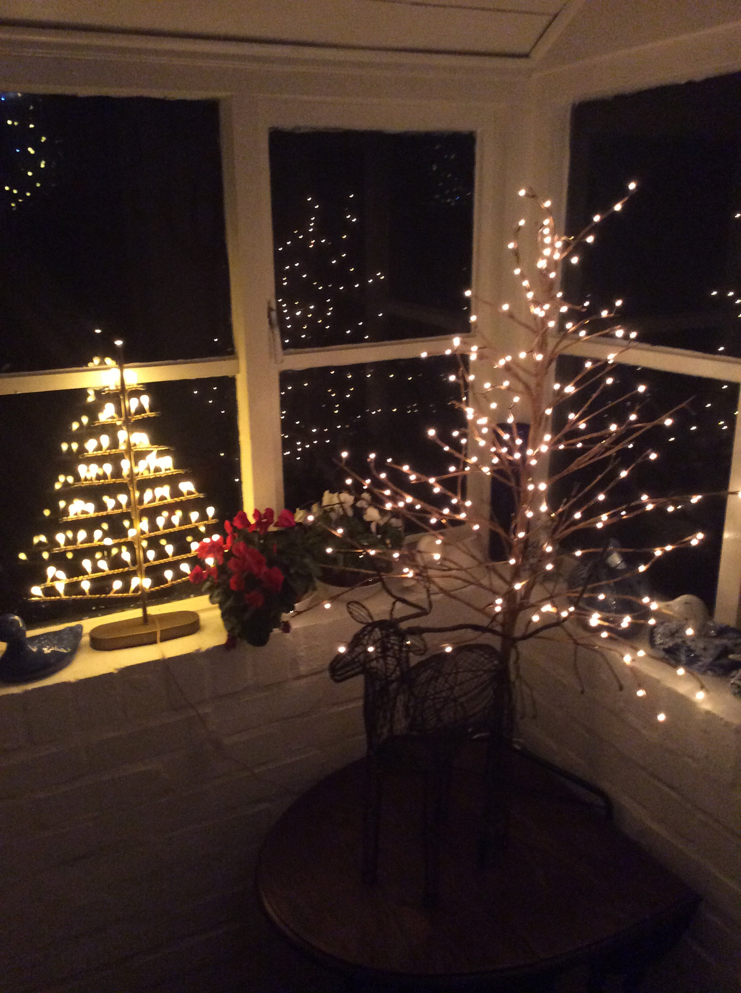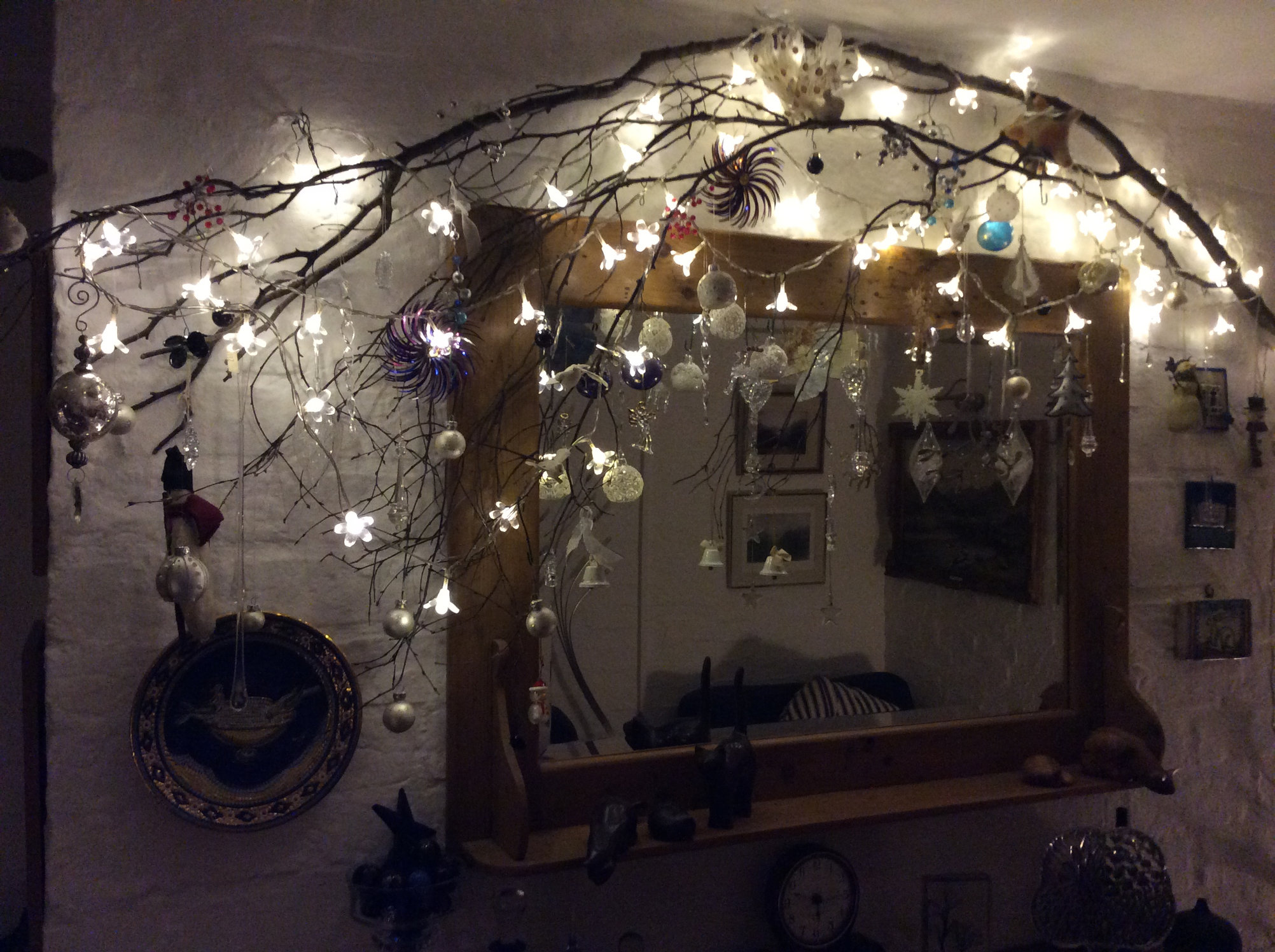Picidae - I love that branch over the mirror. Might adopt that next year. This year we're trying a Scandinavian inspired thingy using bare stems, a garland and cream and gold in the dining room as there isn't room for a tree there........