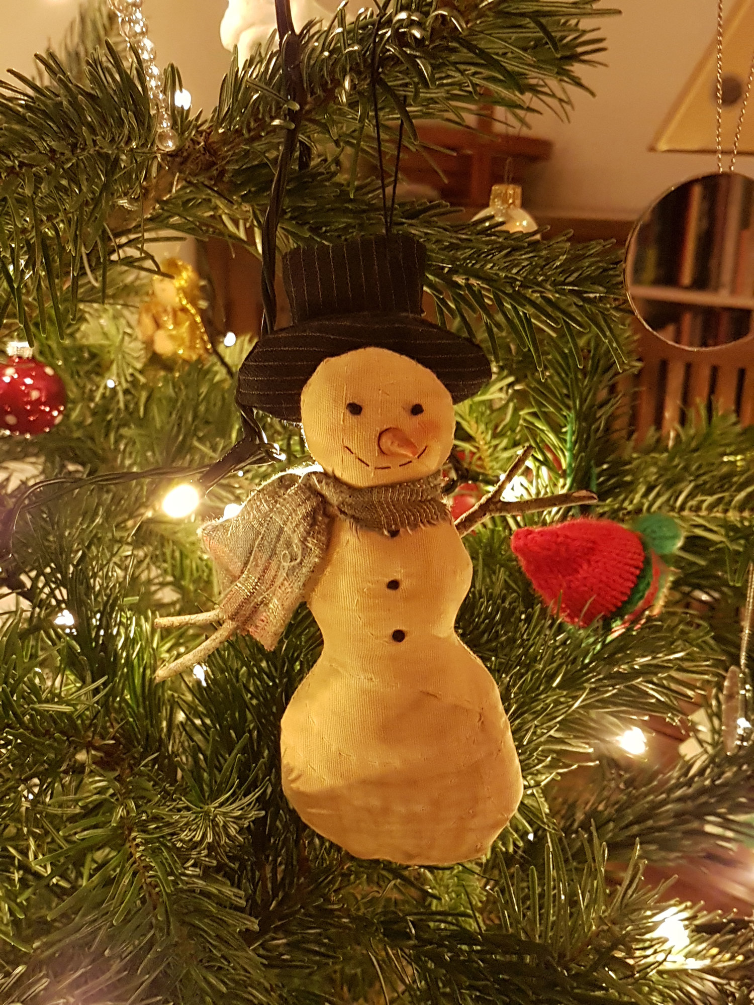No fear, Fairygirl, he’s been ‘seen to’. Actually the gardener was responsible for decorating the branch and the tree. There’s very little to do in the garden at the moment so instead she helps with festive decorations or does the ironing. It’s a great arrangement.