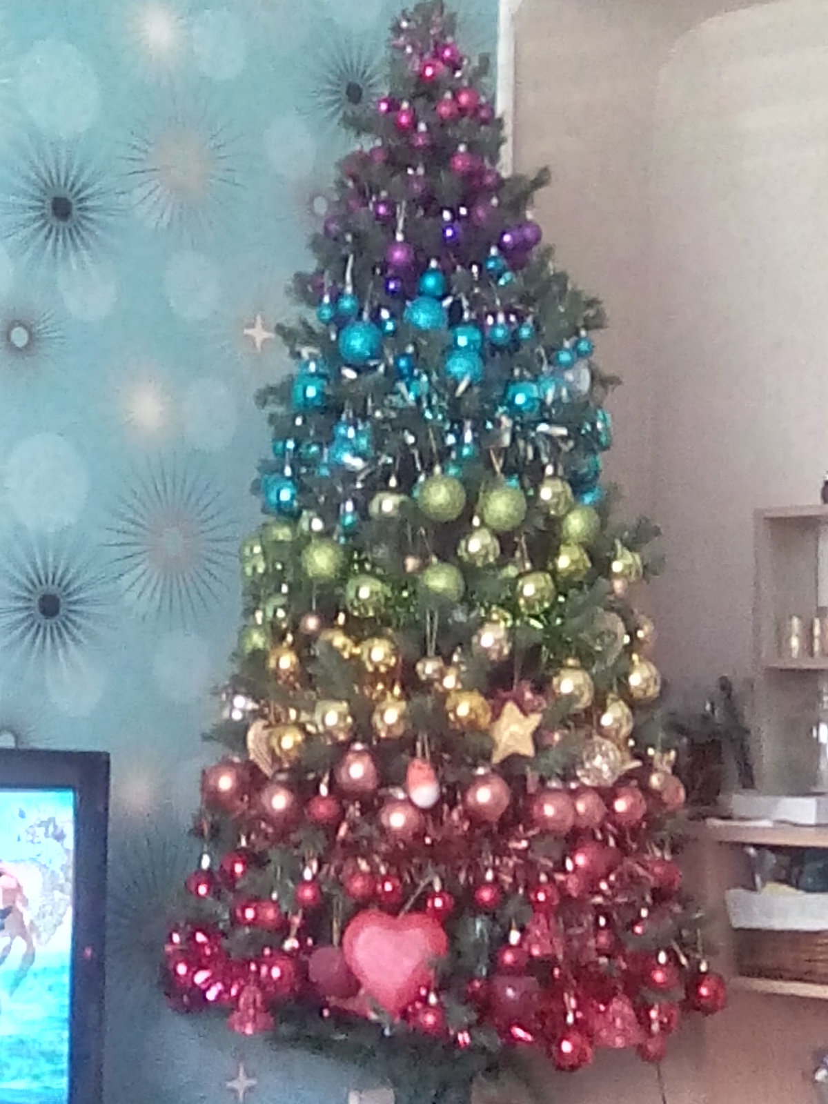 Having it like this kept us all happy😃, and I didn't have to buy a thing. We simply used every bauble from every colour scheme we've had over the past 20 years.