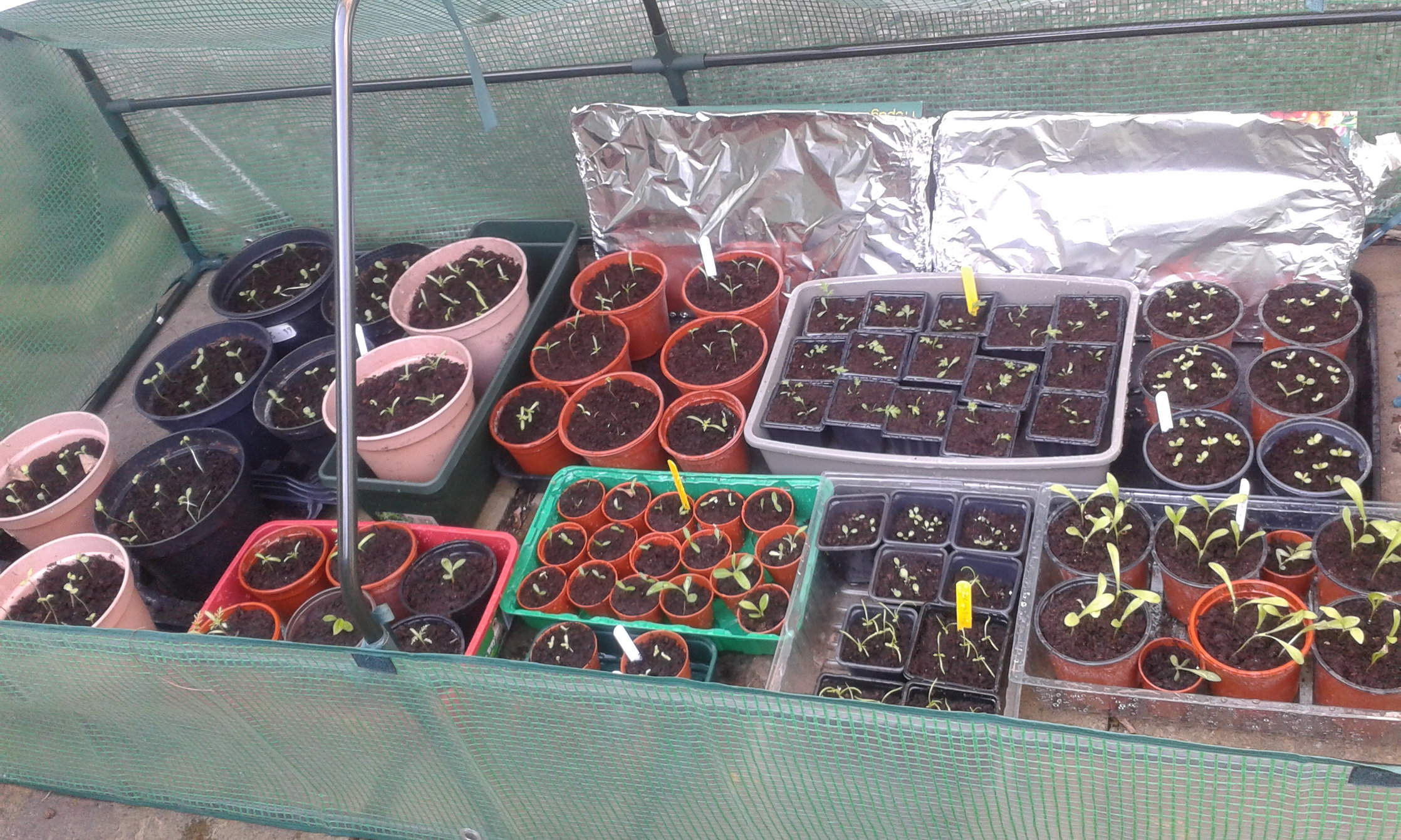 These are what I use in my garden. Once my seeds have established themselves a bit more, and I use the glass one for more mature plants. The foil in the background is to reflect the light on the seeds so that they grow upright and not bend towards the light. They can be dismantled and stored in the winter time, until when required. I would not be without mine, I have two more upright ones next to the glass greenhouse. And I purchased last year a mini wooden greenhouse, it has Perspex windows and opens outwards and you can also open the roof as well.