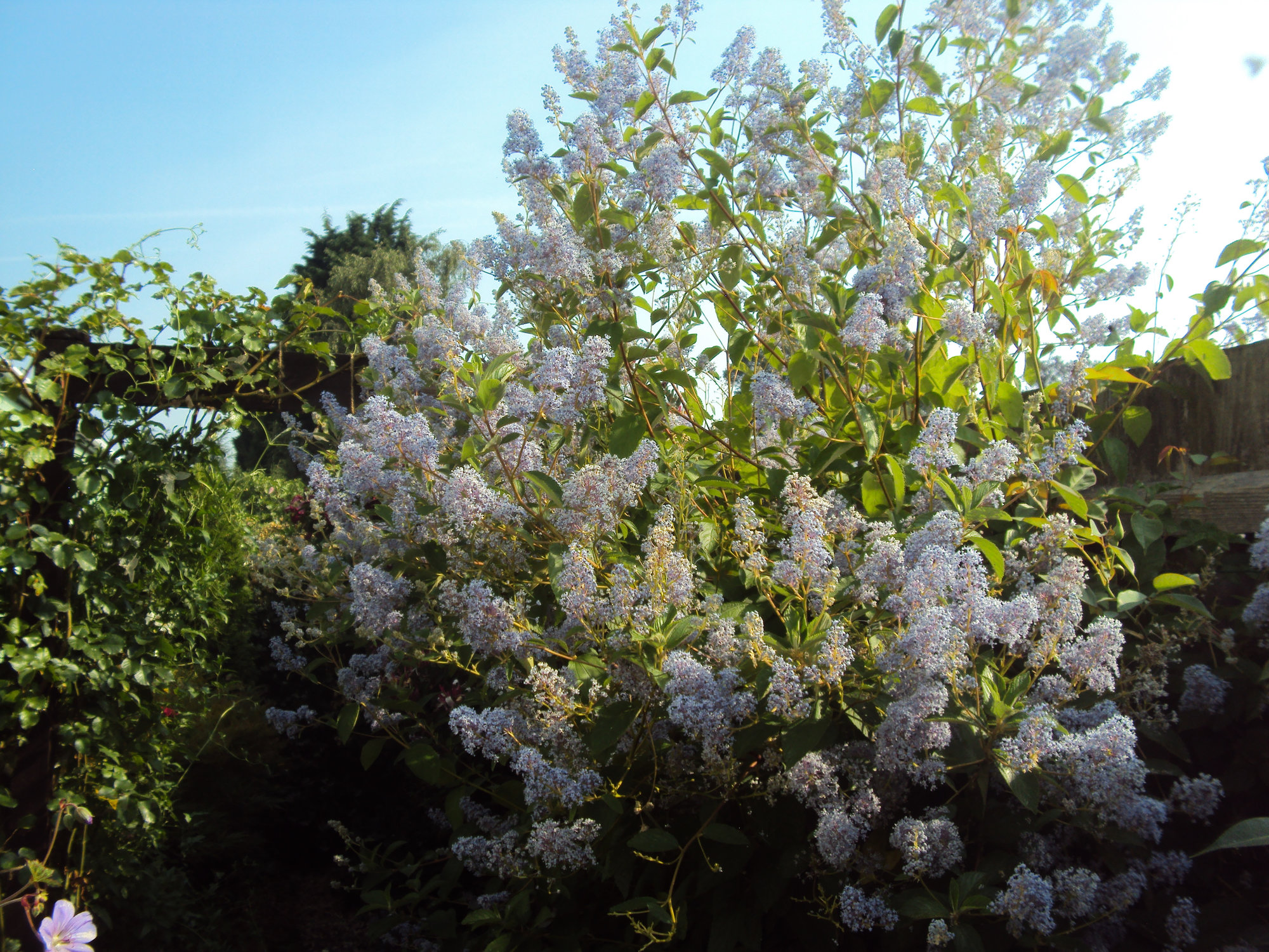 ...So, we have better options by choosing a summer flowering Ceanothus for your wall... may I recommend 'Gloire de Versailles', which is semi evergreen and takes a beast from the east to defoliate it... it flowers profusely and continuously from early June to early Winter, and is capable of 10 foot or so.. I keep mine to 6-8 foot... it is powder blue in colour, with good foliage...