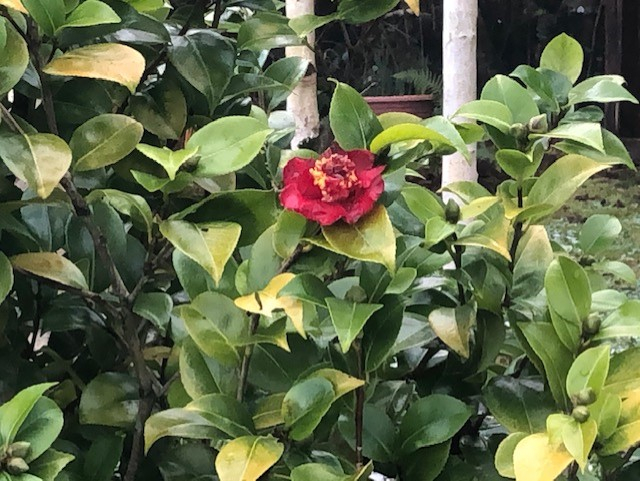 I couldn't believe it today in all the snow one of my camellias has a single flower!!!