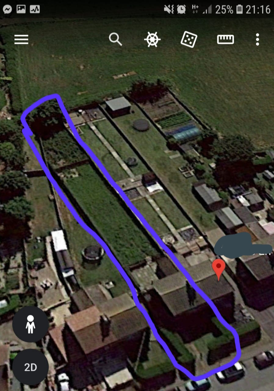 Hi all so as promised this is the photo from Google for the back garden. We have been and measured and the grass area is in fact 153 ft x 26 and a half foot at the widest parts and 16ft at the narrow part at the bottom.