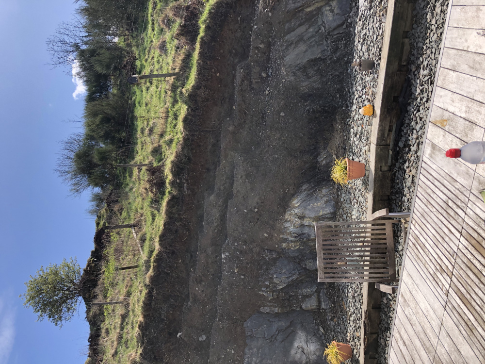 I’ve been in this garden for a year, and I’m just trying to decide how to deal with the garden. As you can see very steep slope - it’s basically a cliff. For scale that plant support is 6 foot. Acidic soil on limestone, in summer gets some sun in afternoon. Has anyone dealt with anything similar? I think I’m going to try various plants and just see what takes, thinking I might use climbers as ground cover to scramble up but I’m worried that it won’t be enough to smother grass and it’ll just be even more difficult to control. Any ideas? I’m brainstorming. Thanks. 0