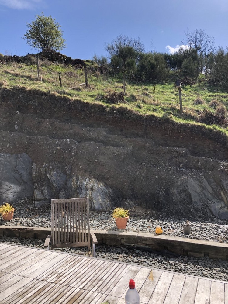 Still cliff faces, Karen, but at least they’re now the right way up. In the setting you have here maybe rugged gorse would help to stabilise the soil and fit in with the landscape.