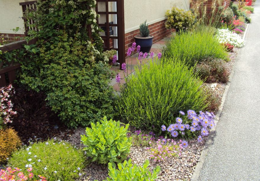 I’d like to do a Mediterranean style area if I can with a couple of olive trees, under planted with agapanthus, glauca festuca, lavender and a few buxus balls.