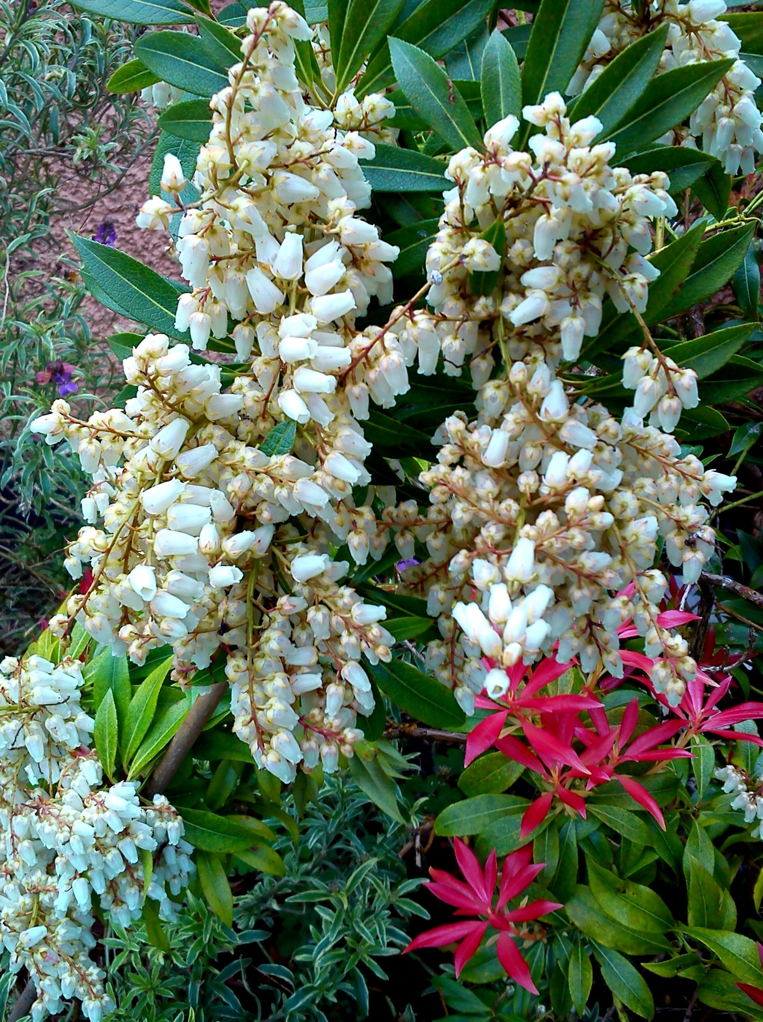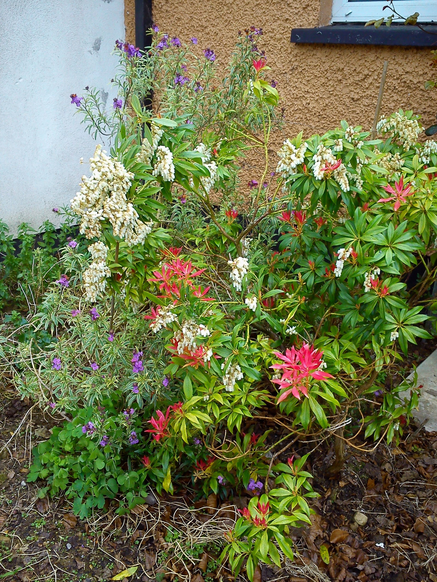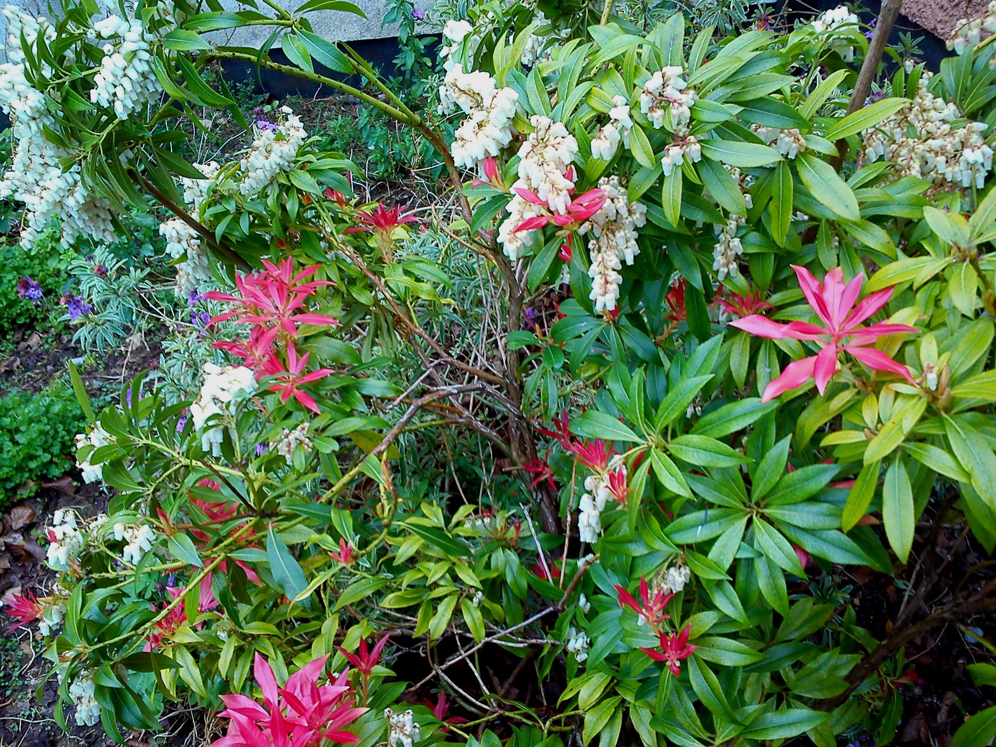 I didn't spot Pieris japonica 'Mountain fire',..in that link,..its something i like as it is constantly changing colours throughout the seasons,..i have moved mine from the main garden to the front of the house in the past month,..image below.