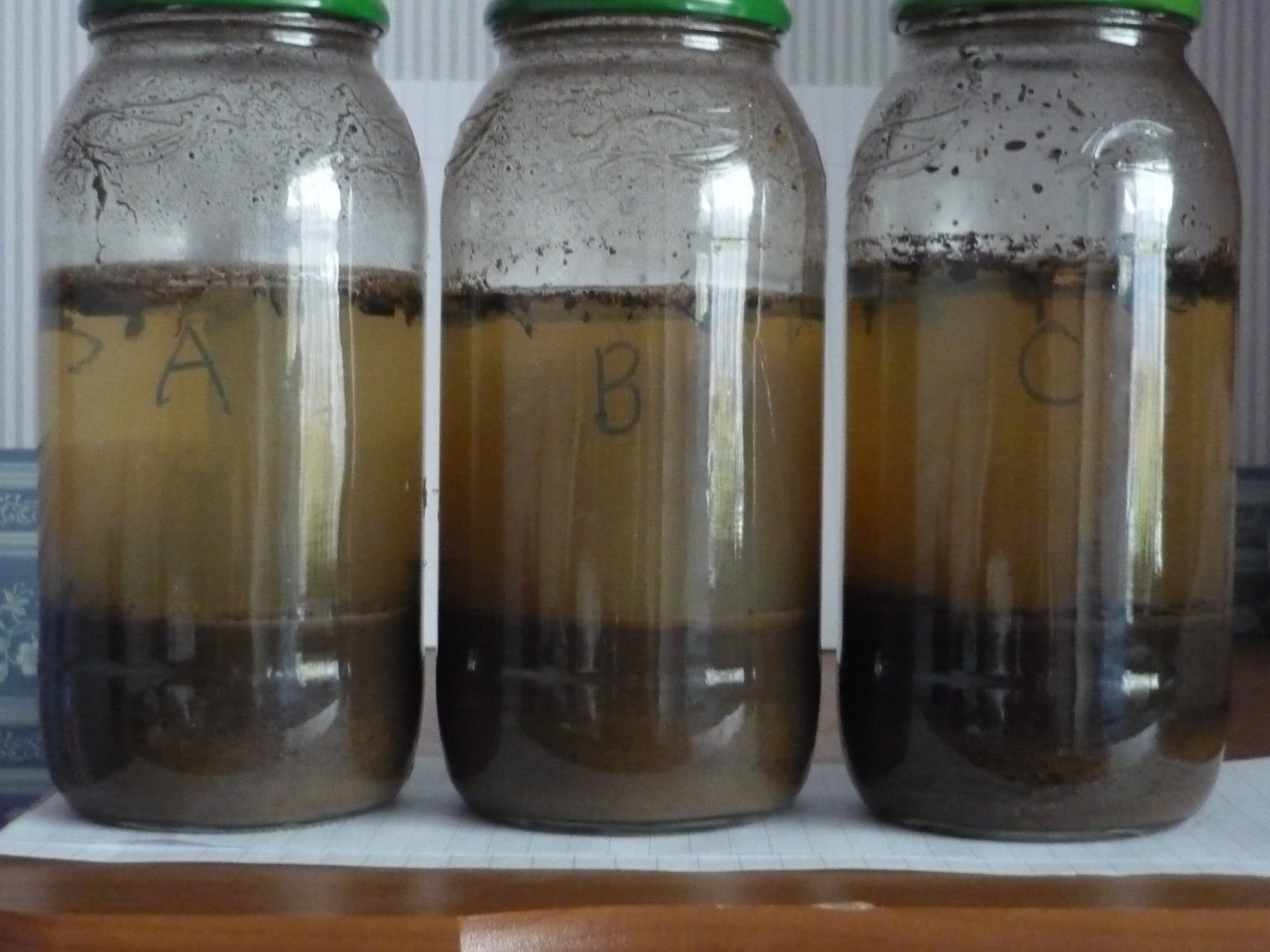 the 2.5 ft tall beds are half filled with the earth (and rubble) that existed before, then quarter of same that was sived to remove large stones and broken glass [house was built on old allotments], top quarter is wickes top soil