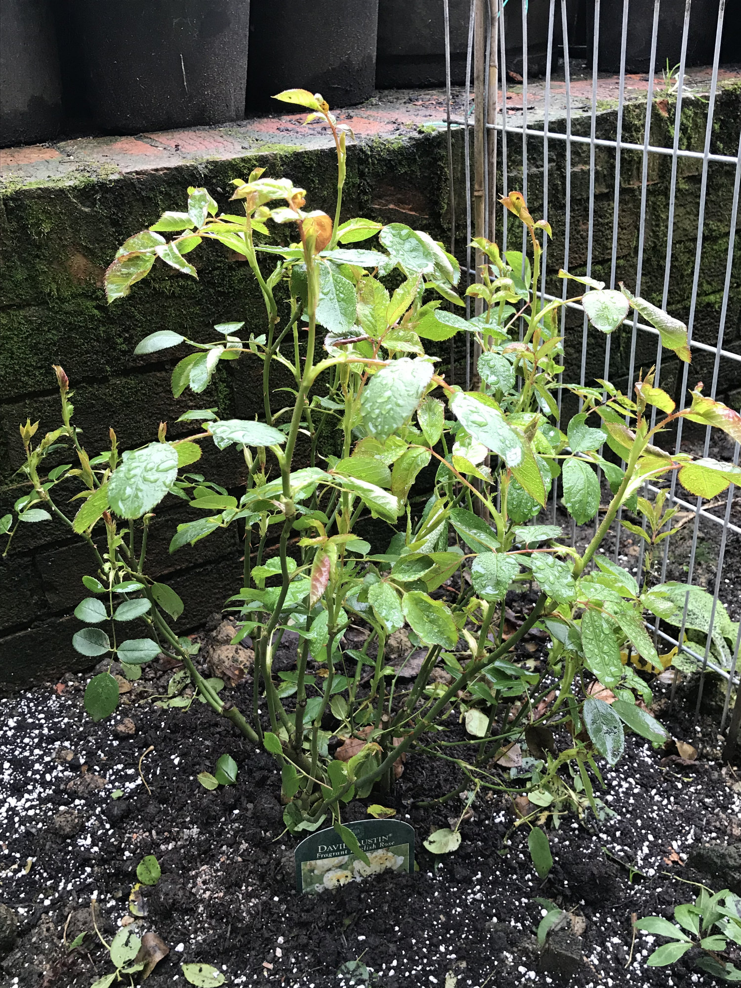 Small buds on Harlow Carr and Gertrude Jekyll. Lady Emma and Kew Gardens, having burst into bloom early are now sulking and not producing any more at the moment..