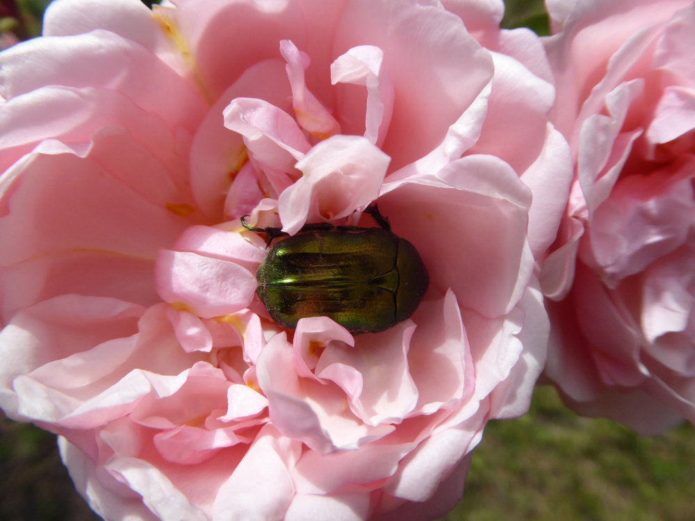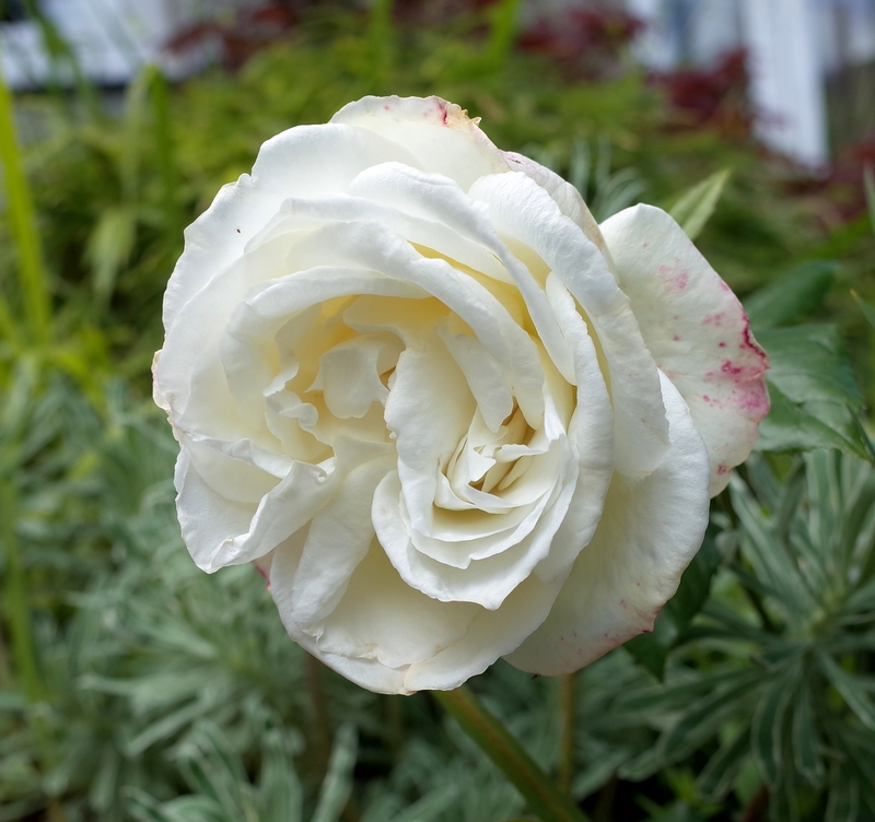 Unknown hybrid tea, huge blooms. It's the first time I've found a rose scent unpleasant. It smells like a freshly cut grass which got partially rotten and peed on by a dog, no sweetness in it, just a grassy scent with an acidic, almost sharp, back note. I asked my husband about it and he said