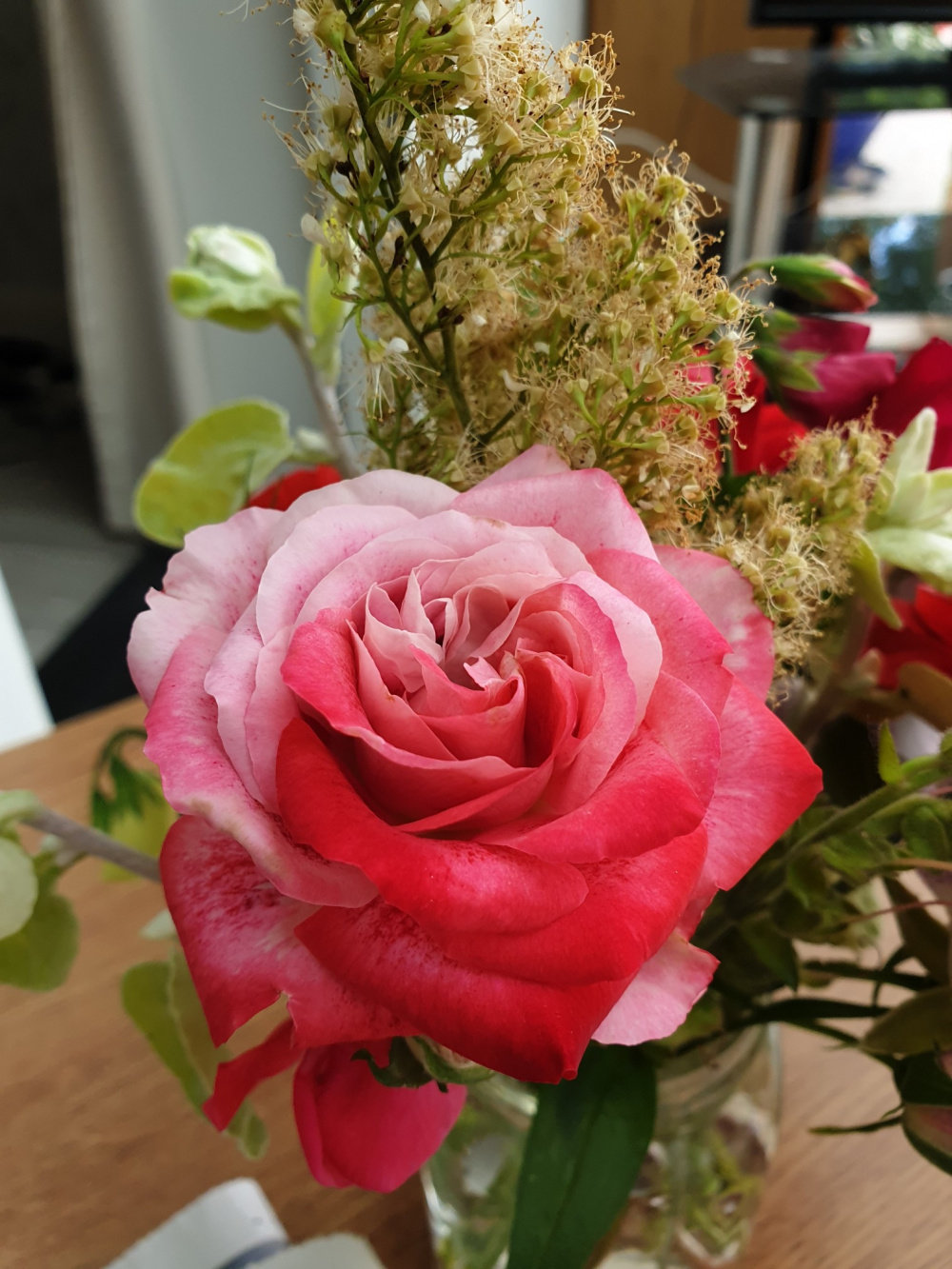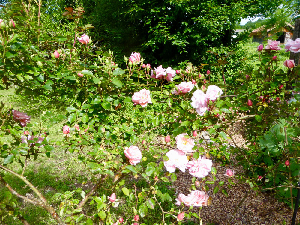 Here’s our albertine, with a beautiful friend. Came from a cutting from OH’s father’s garden in south london and now living happily halfway up a mountain.