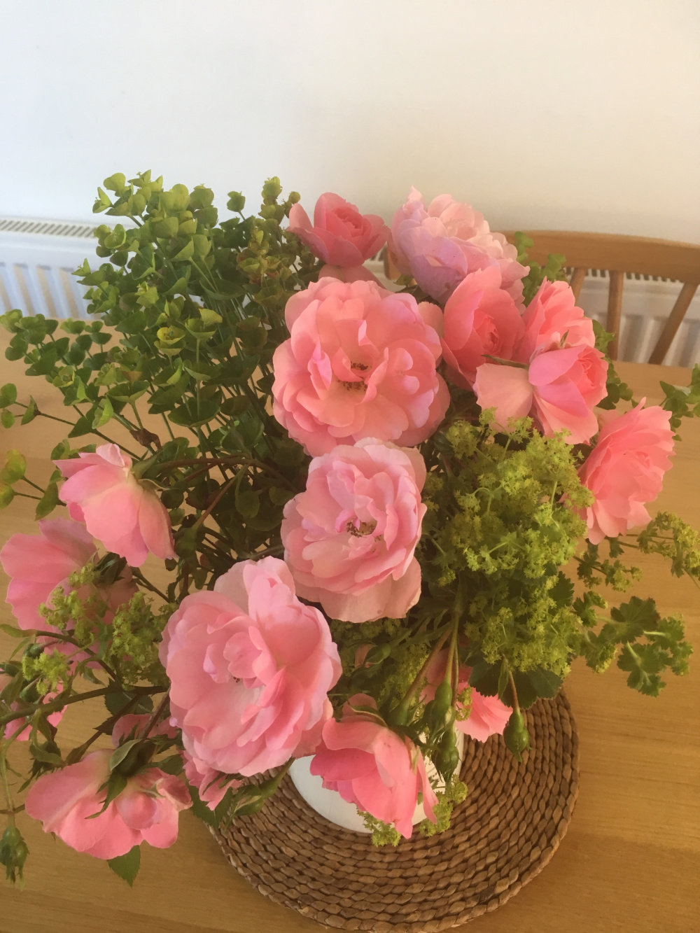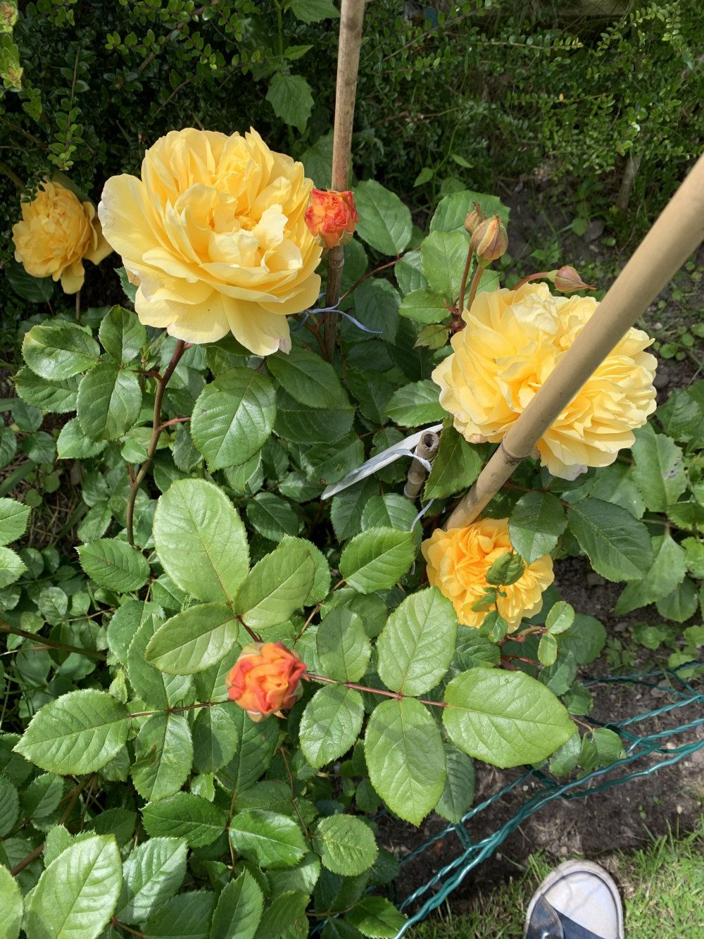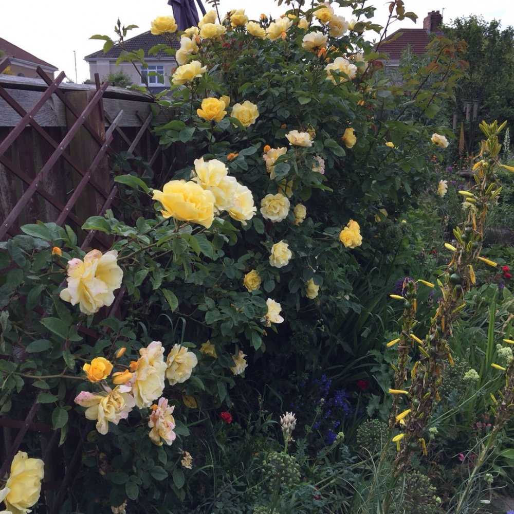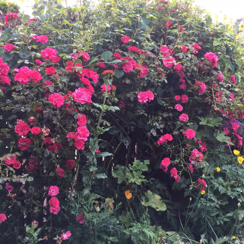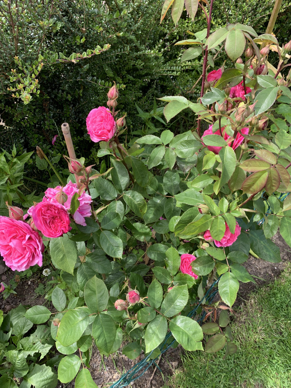Golden Gate, strong as an ox, plentiful thorns Summer Sweetheart, old foliage is a bit manky (unpruned) It's a warmer pink in real life, but this is the best I could do with my phone🙂