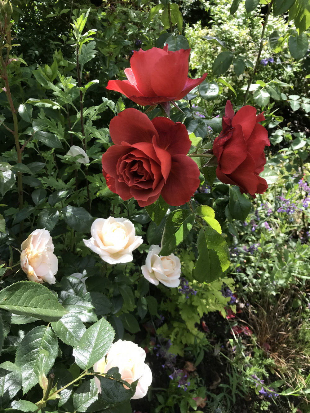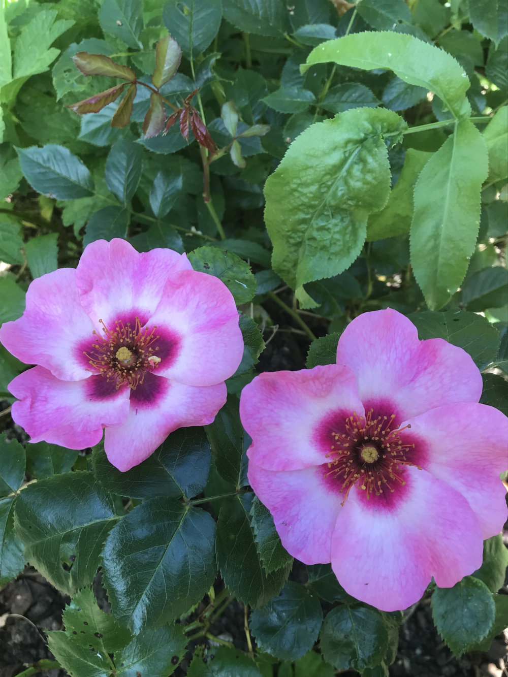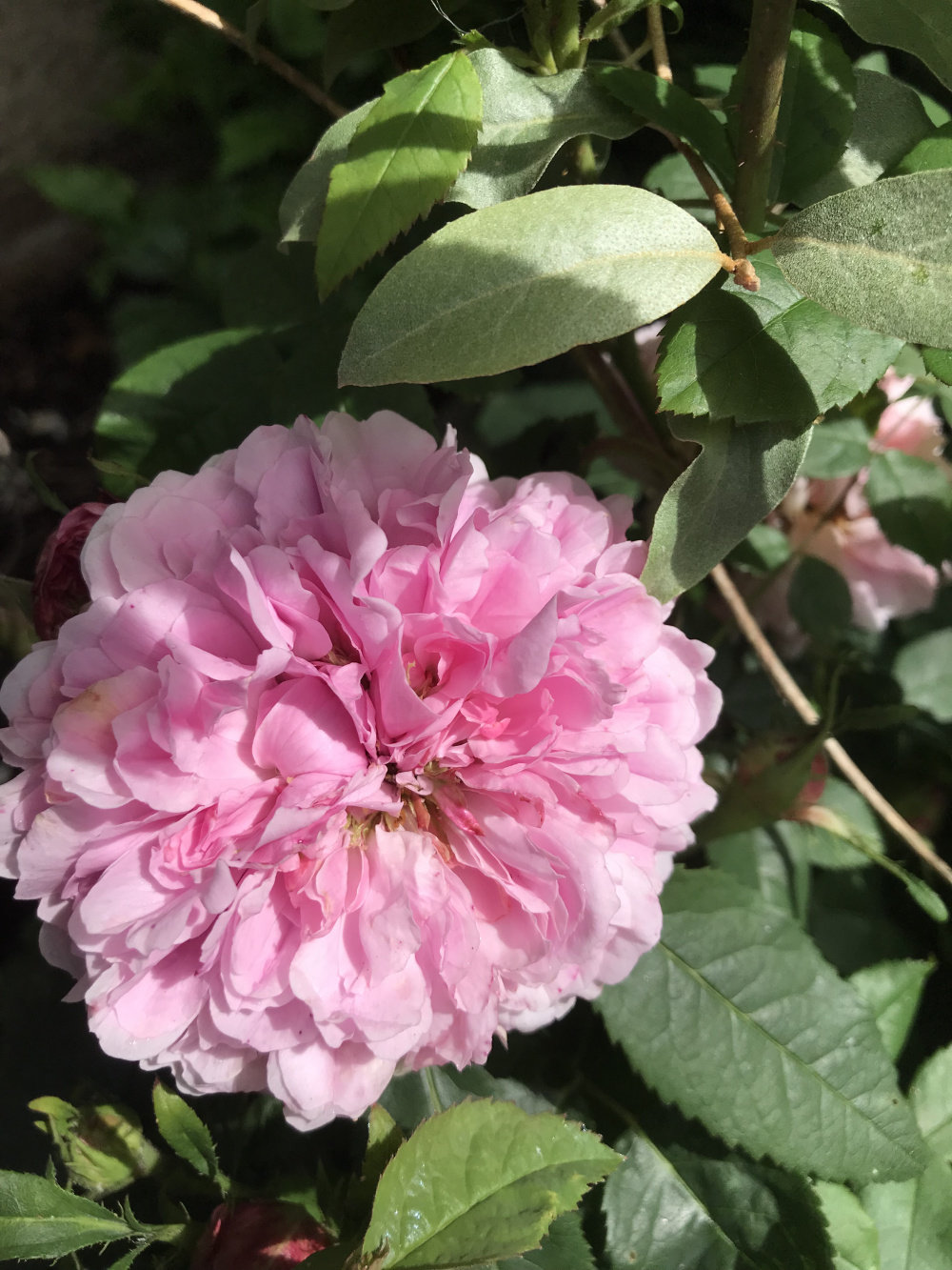 Susie just getting going. Lovely perfume and super healthy bushy foliage. Some blooms are whirls some of fashioned style.