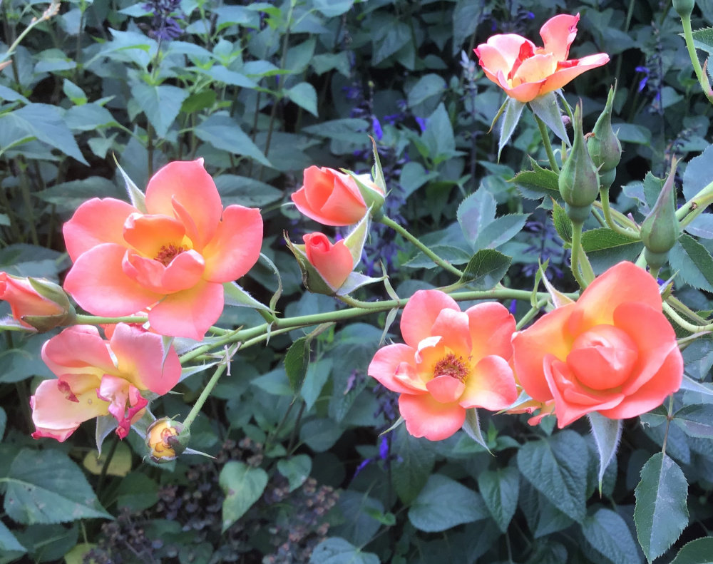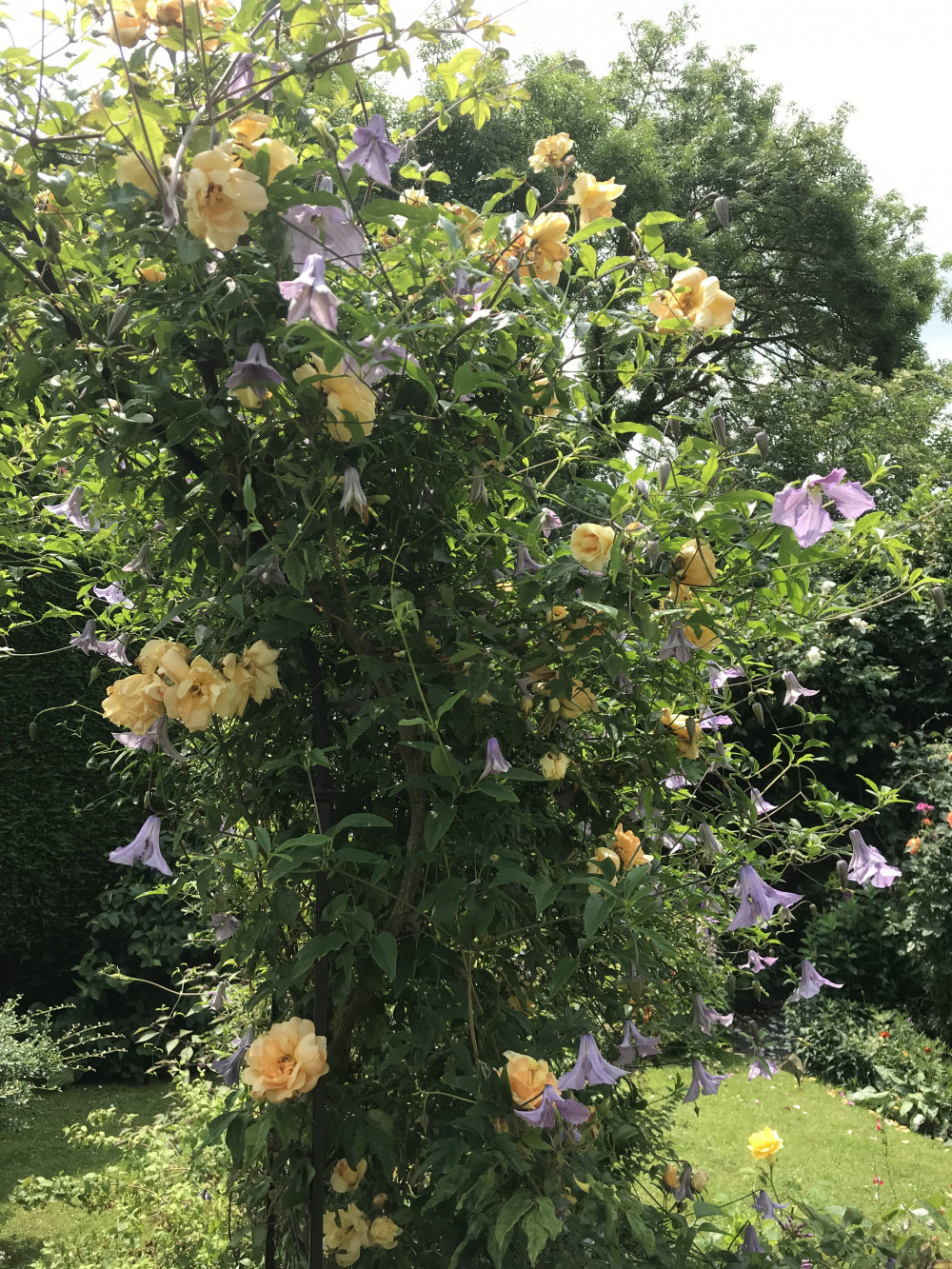 Crepescule with Betty Corning - both vigorous growers but Betty has to be cut back so as not to swamp the rose.